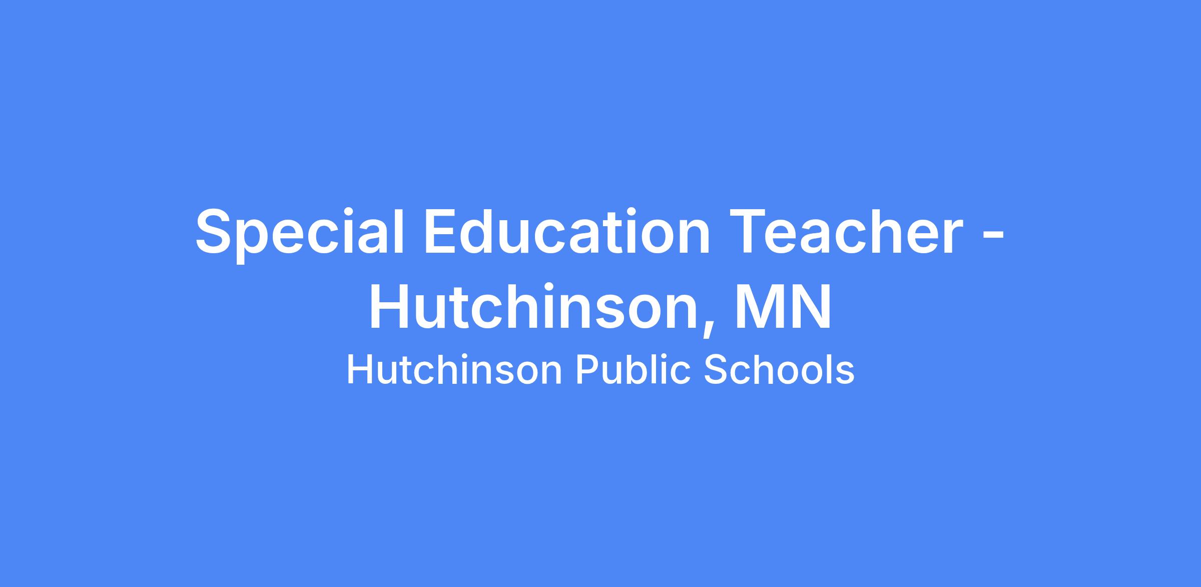 Hutchinson Public Schools is seeking a Special Education Teacher for the remainder of the 2025-2026 school year and beyond.