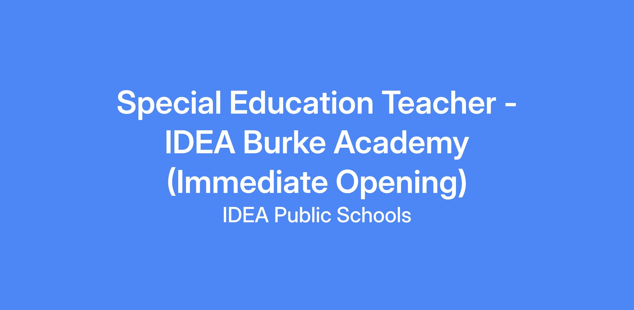 Special Education Teacher - IDEA Burke Academy (Immediate Opening)