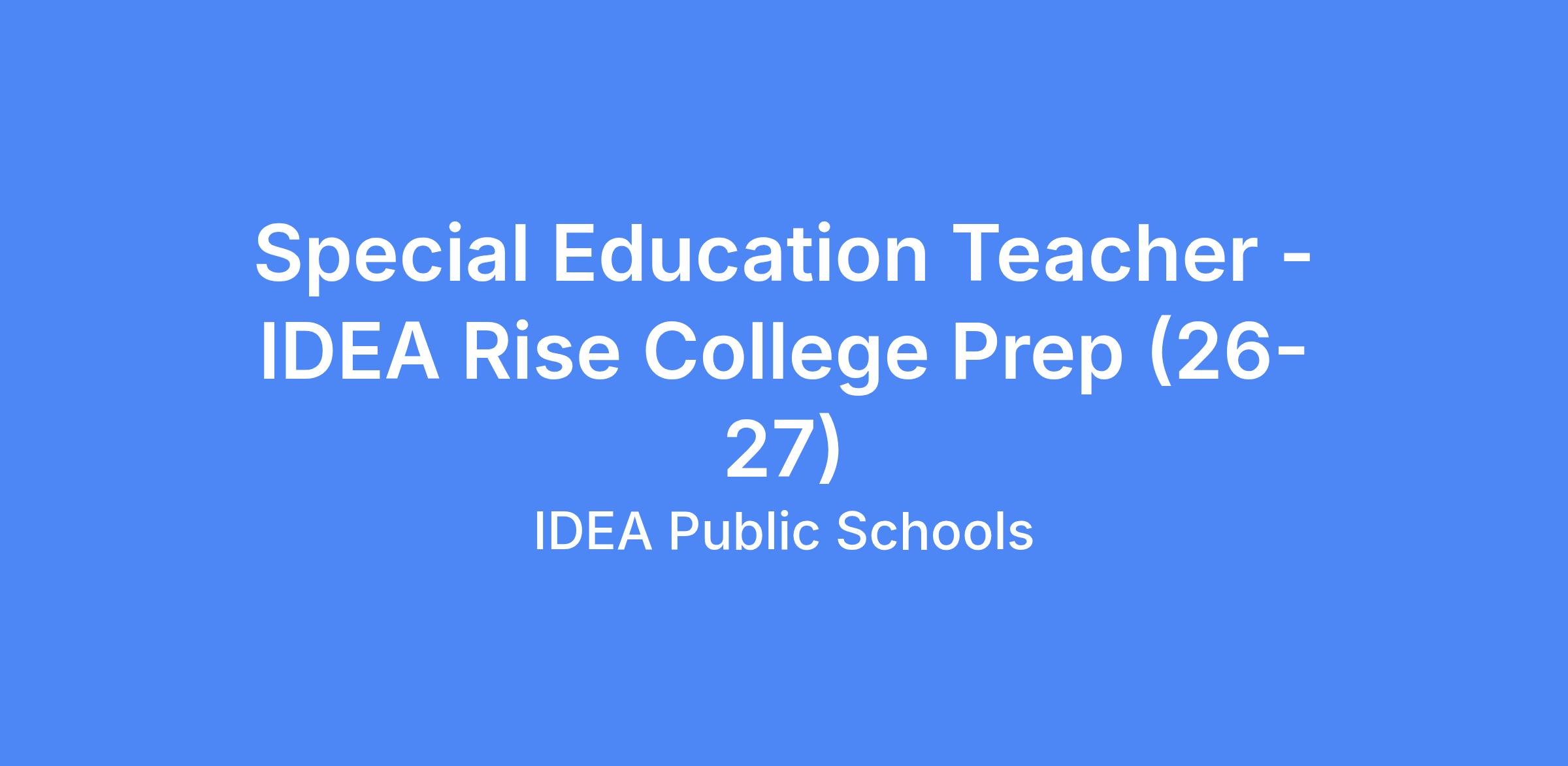 Role Mission: IDEA Special Education teachers are responsible for the achievement and support of special education. Special Education teachers develop individualized plans and work with students who have a wide range of learning, cognitive, emotional, and physical disabilities. They provide in-class support for various subjects, such as reading, writing, and math, to students with outlined service minutes support. They also teach content mastery for students with outlined accommodations and service minutes support. The IDEA Special Education teacher provides the crucial bridge between home and school for our highest need students and their families.