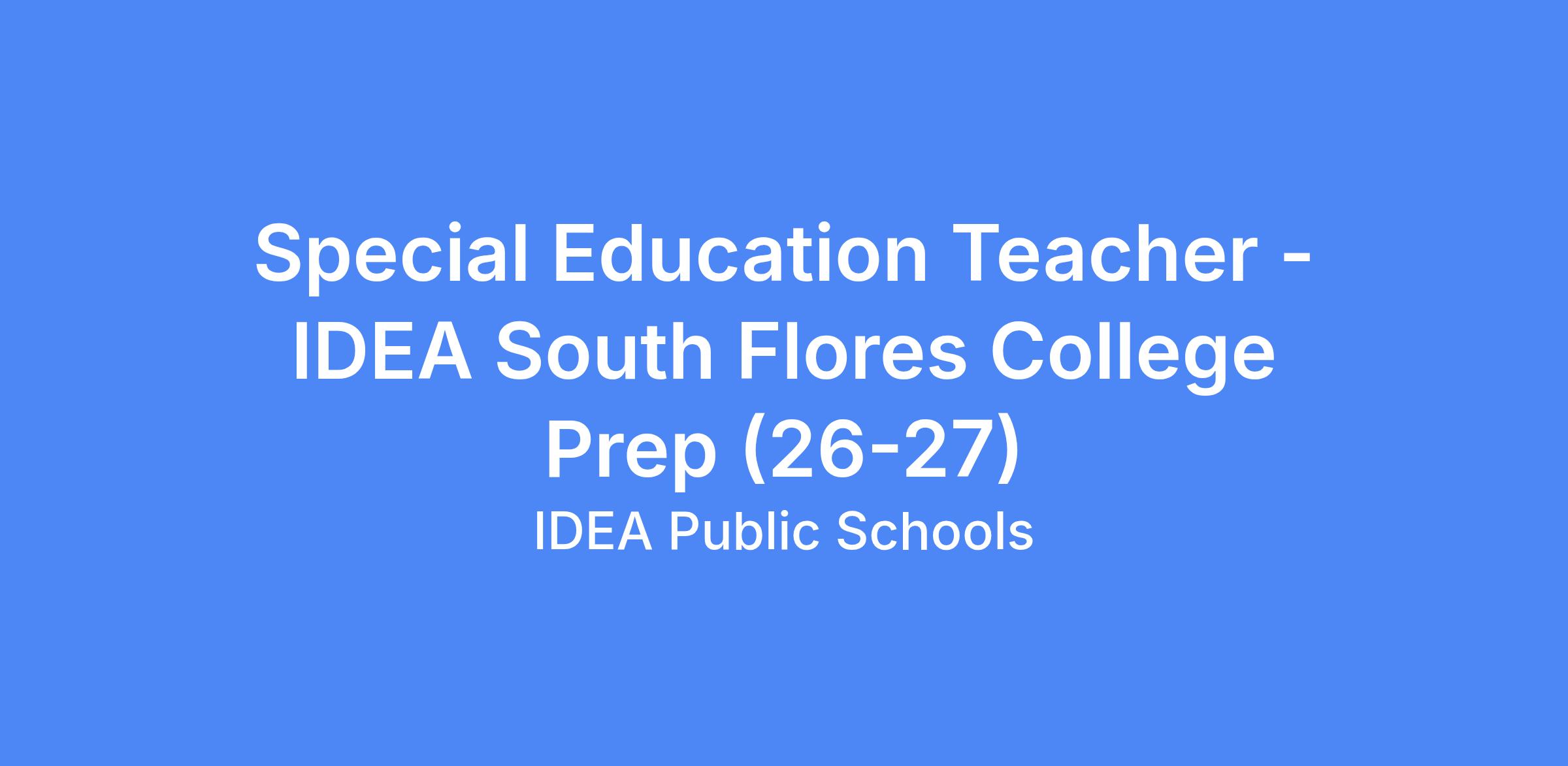 Special Education Teacher - IDEA South Flores College Prep (26-27)