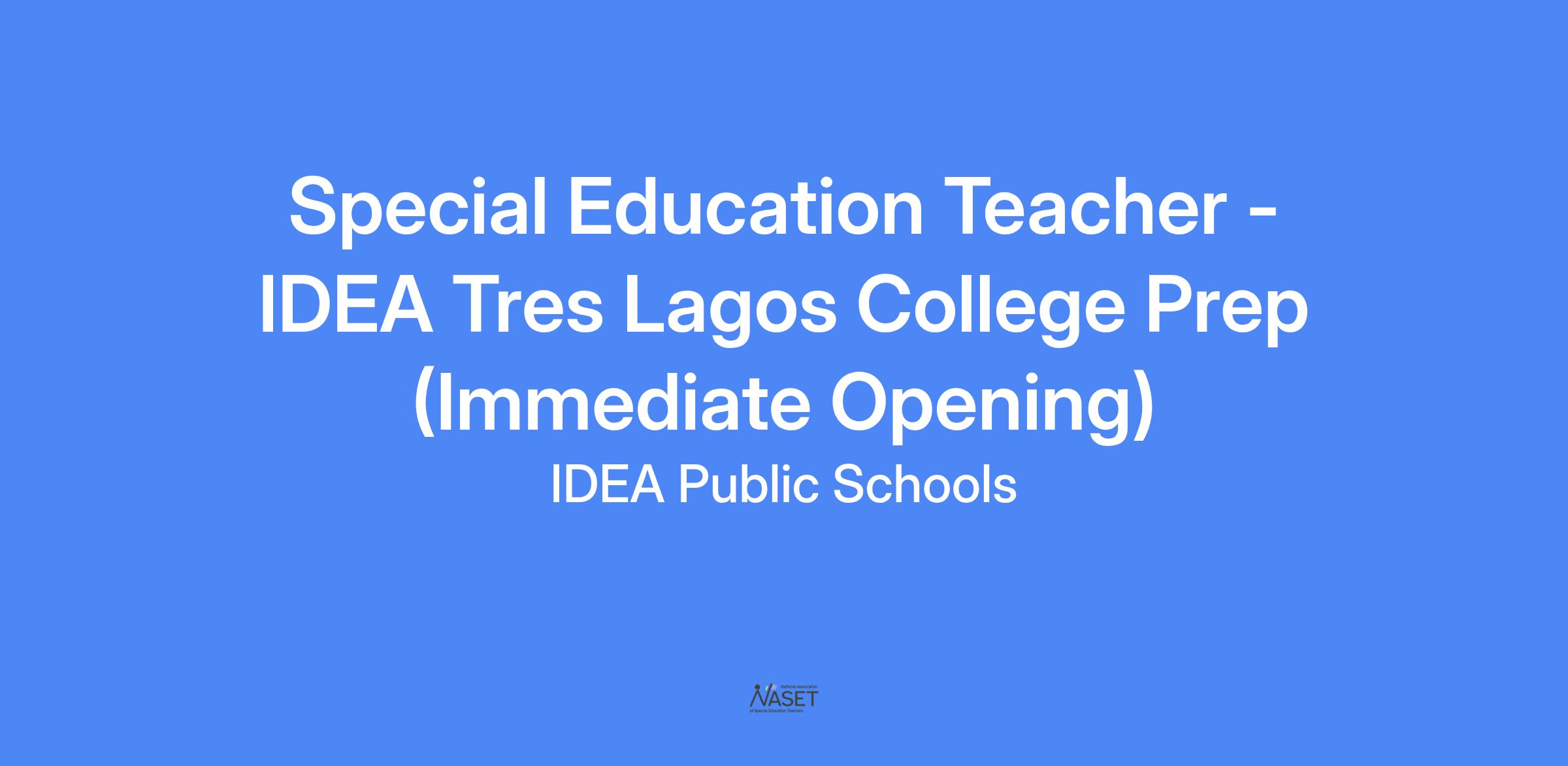 Special Education Teacher - IDEA Tres Lagos College Prep (Immediate Opening)