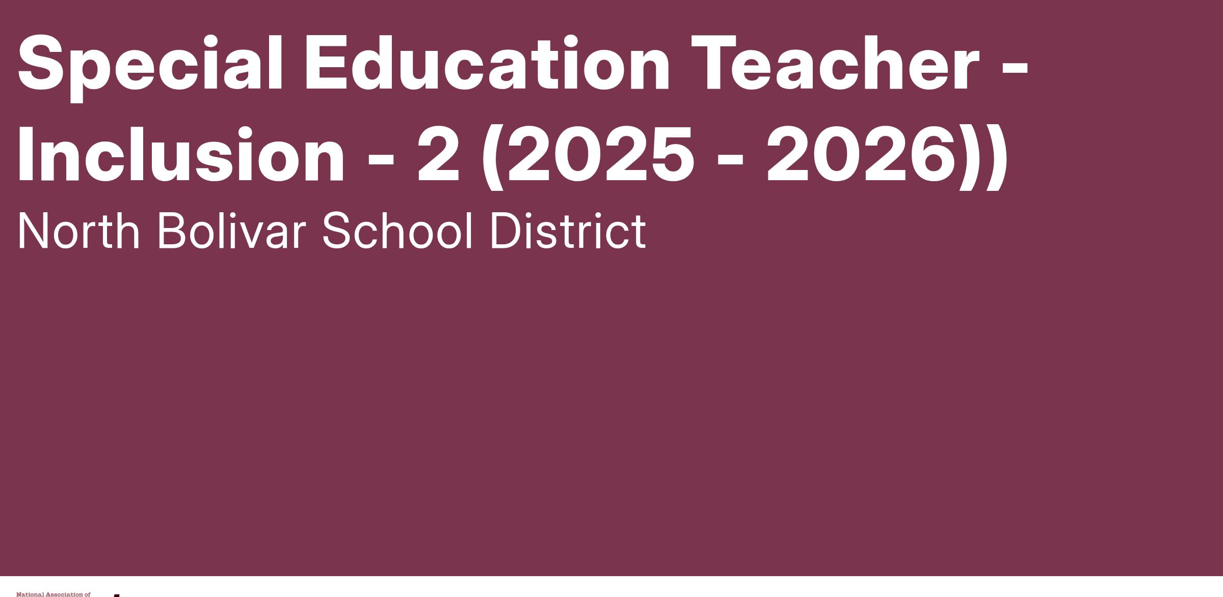 POSITION TITLE: Special Education Teacher (Inclusion)