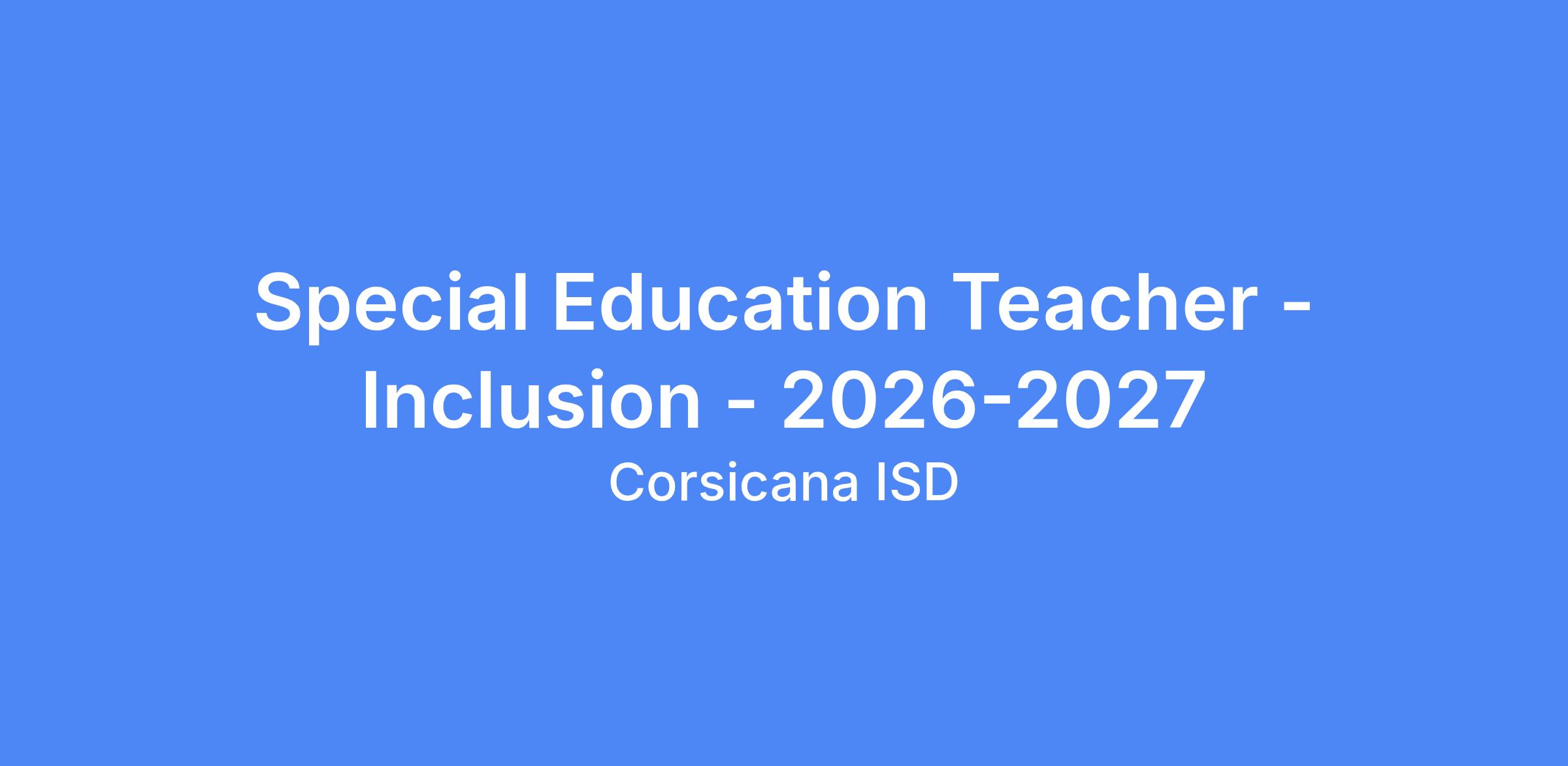 Special Education Teacher - Inclusion - 2026-2027