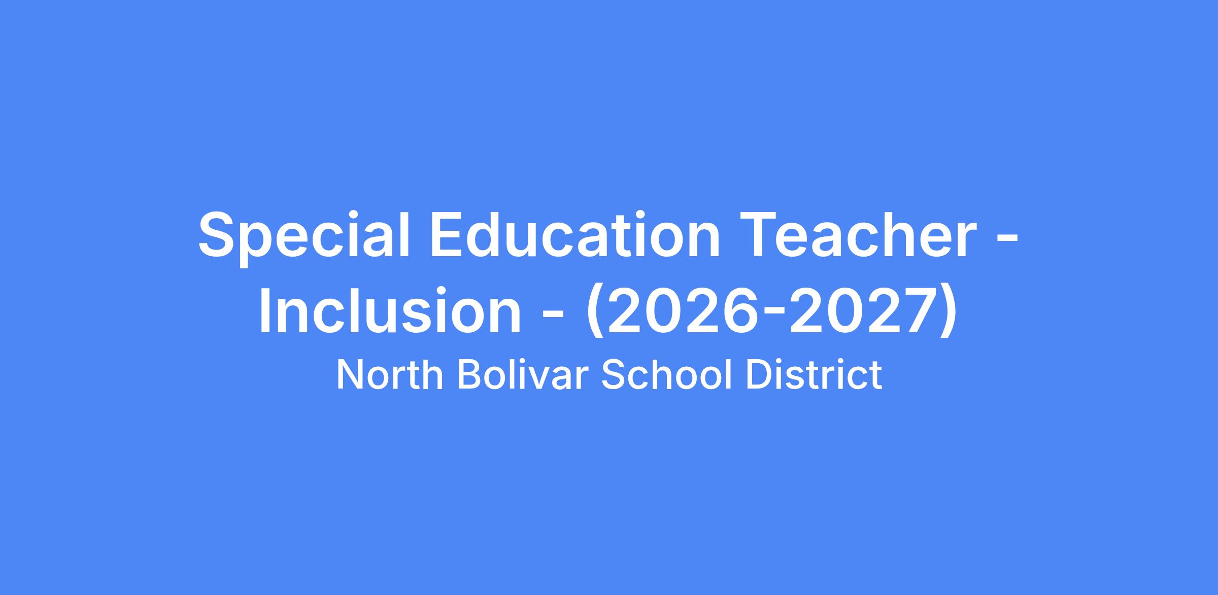 POSITION TITLE: Special Education Teacher (Inclusion)