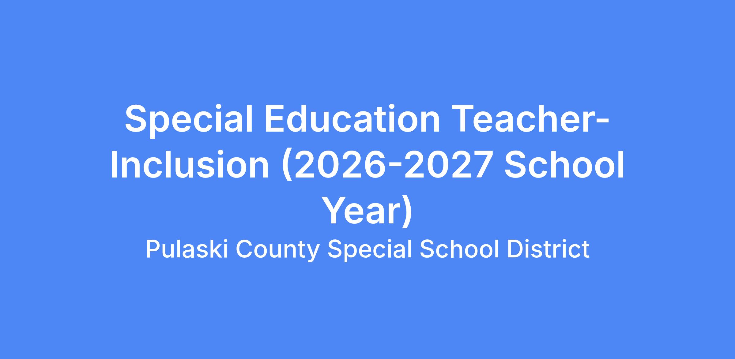 POSITION TITLE: SPECIAL EDUCATION TEACHER-Inclusion