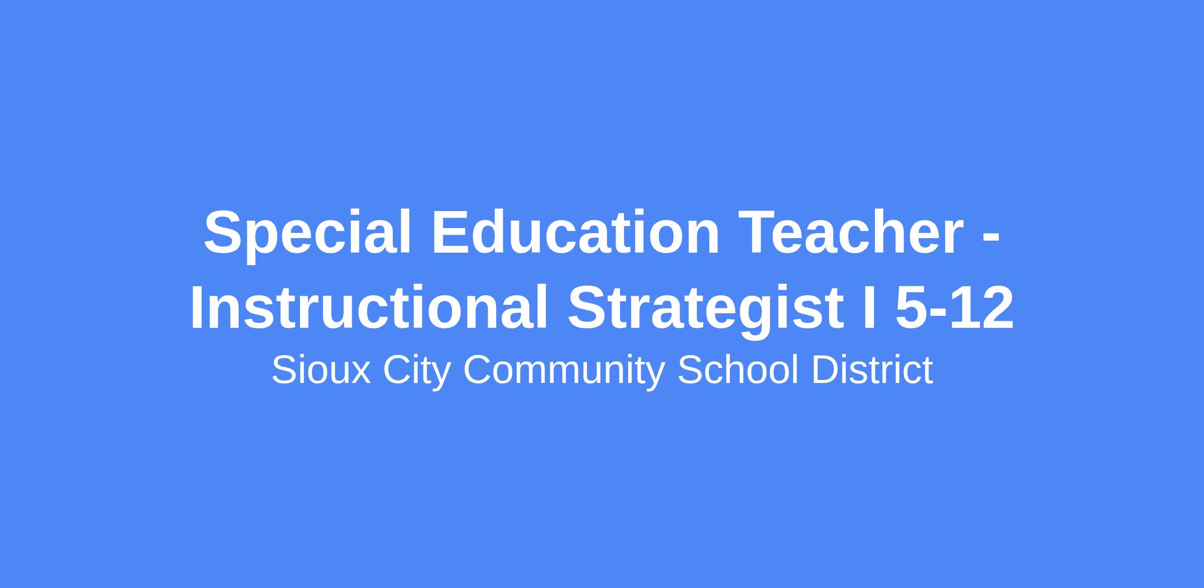 The special education teacher is the educational leader in the classroom and will ensure that the Sioux City Community School District programs and curricula are implemented in a way that maximizes student-learning experiences. The teacher is responsible for the supervision and evaluation of all students within his/her teaching assignment. Consistent with the Department of Education and Sioux City Community School District policies, the teacher will work within an established framework for the delivery of educational services which support student learning for students with mild/moderate disabilities affecting behavior, academics, or communication. This may include students who have specific learning disabilities, those who learn like students with autism, and those who have mild behavior challenges. Working collaboratively with a team of educational professionals, the teacher will demonstrate a strong commitment to planning for the improvement of student achievement. Teaches students academic, social, executive functioning and communication skills, organizes and presents instruction in an environment which helps students learn the subject matter and teaches skills that will contribute to their educational and social development.
