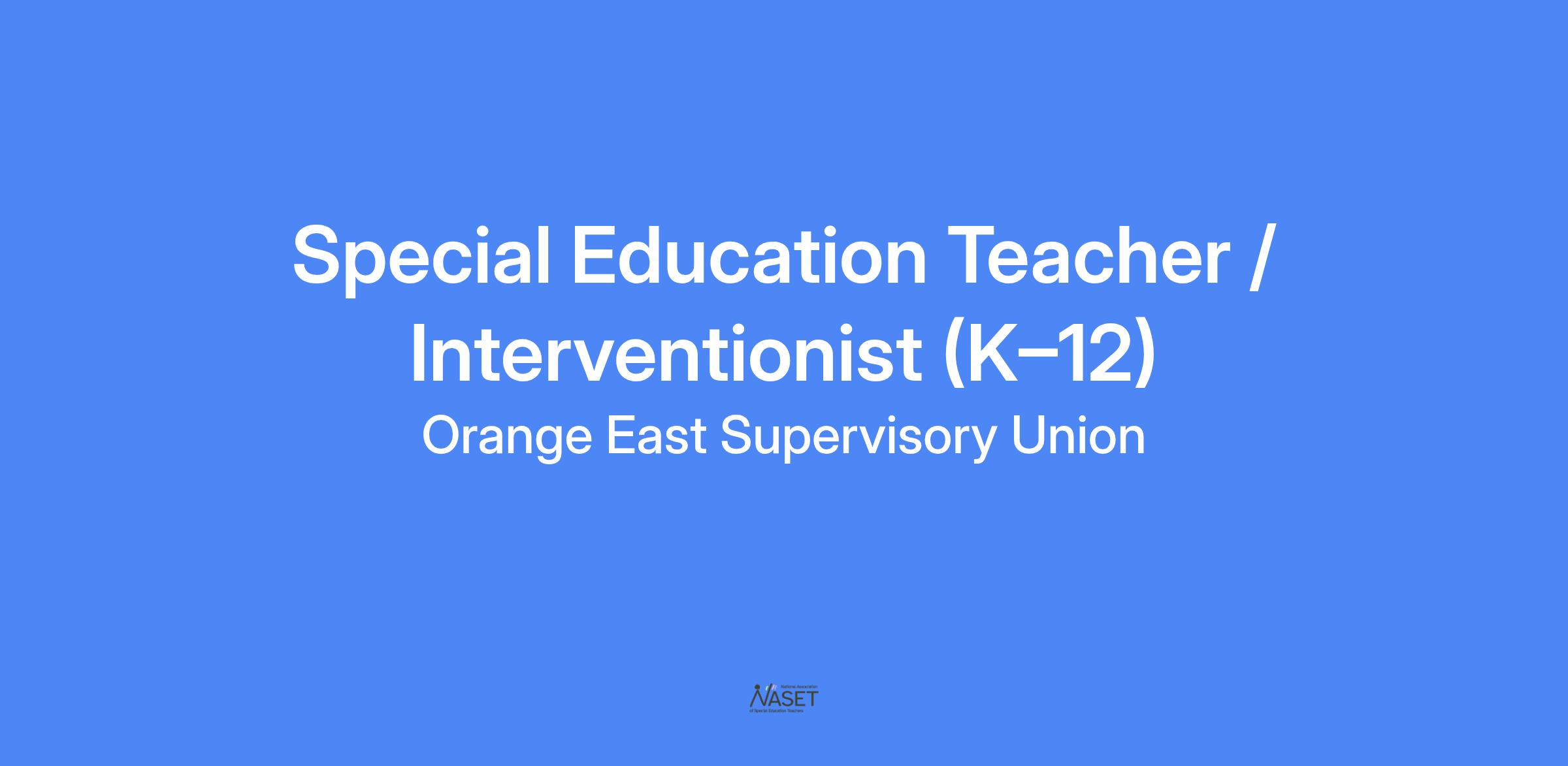 Orange East Supervisory Union is seeking a dedicated and skilled Special Education Teacher or Interventionist to provide academic, behavioral, and emotional support to students in grades K through 12. This role requires close collaboration with general education teachers, other special educators, and service providers, to ensure inclusive, effective, and individualized education plans (IEPs) are developed and implemented.