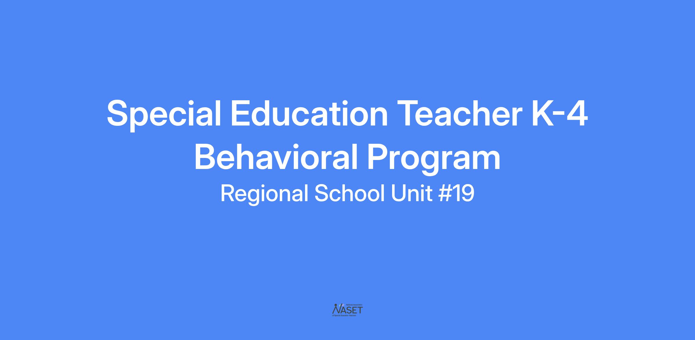 RSU 19 has a vacancy for a Special Education Teacher for a K- Behavioral Program.