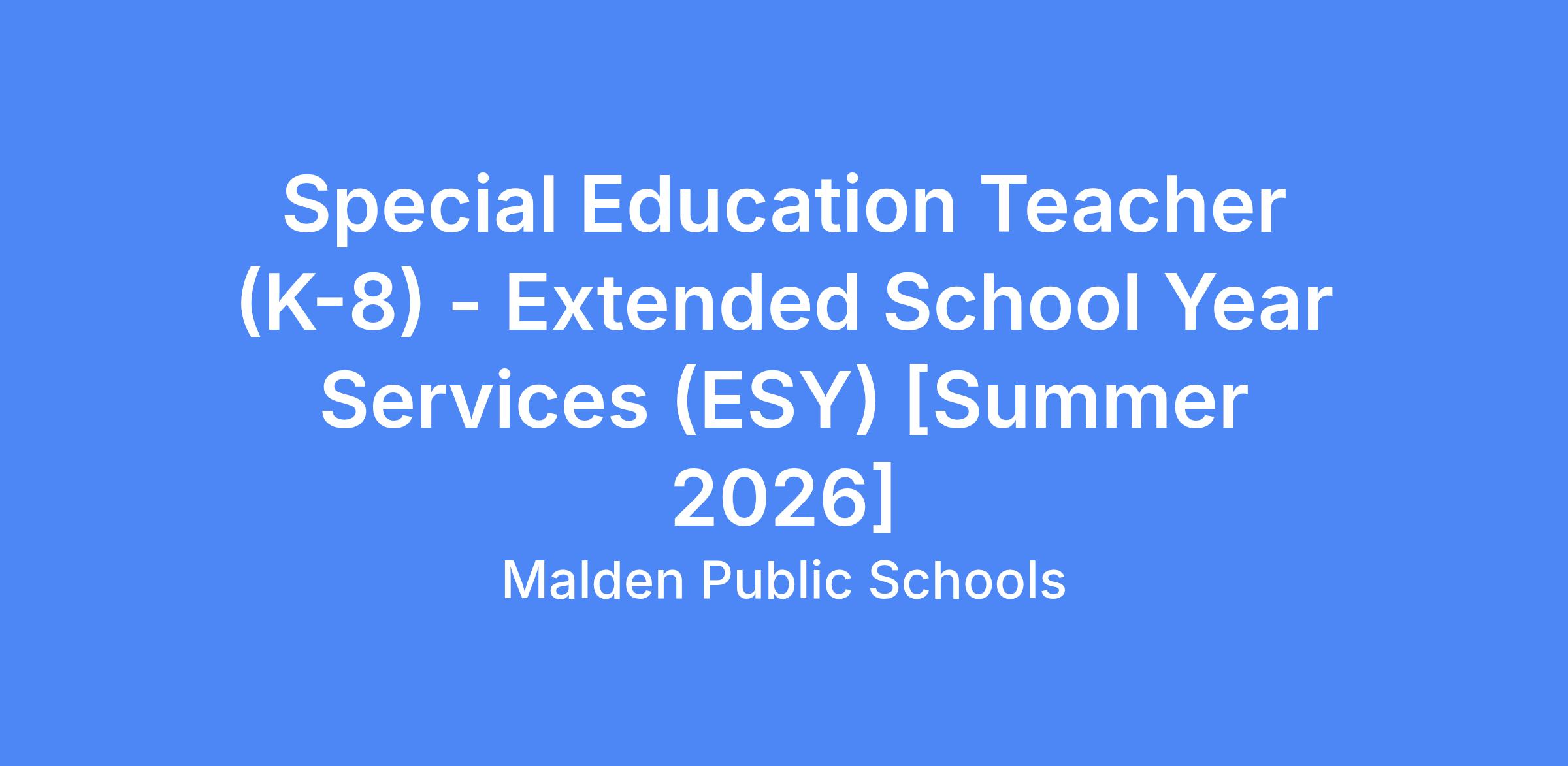 To Apply: Apply formally on School Spring. Questions should be directed to the Special Education Department, at Malden Public Schools, sscalese@maldenps.org, jrizzo@maldenps.org, tmcdonald@maldenps.org.