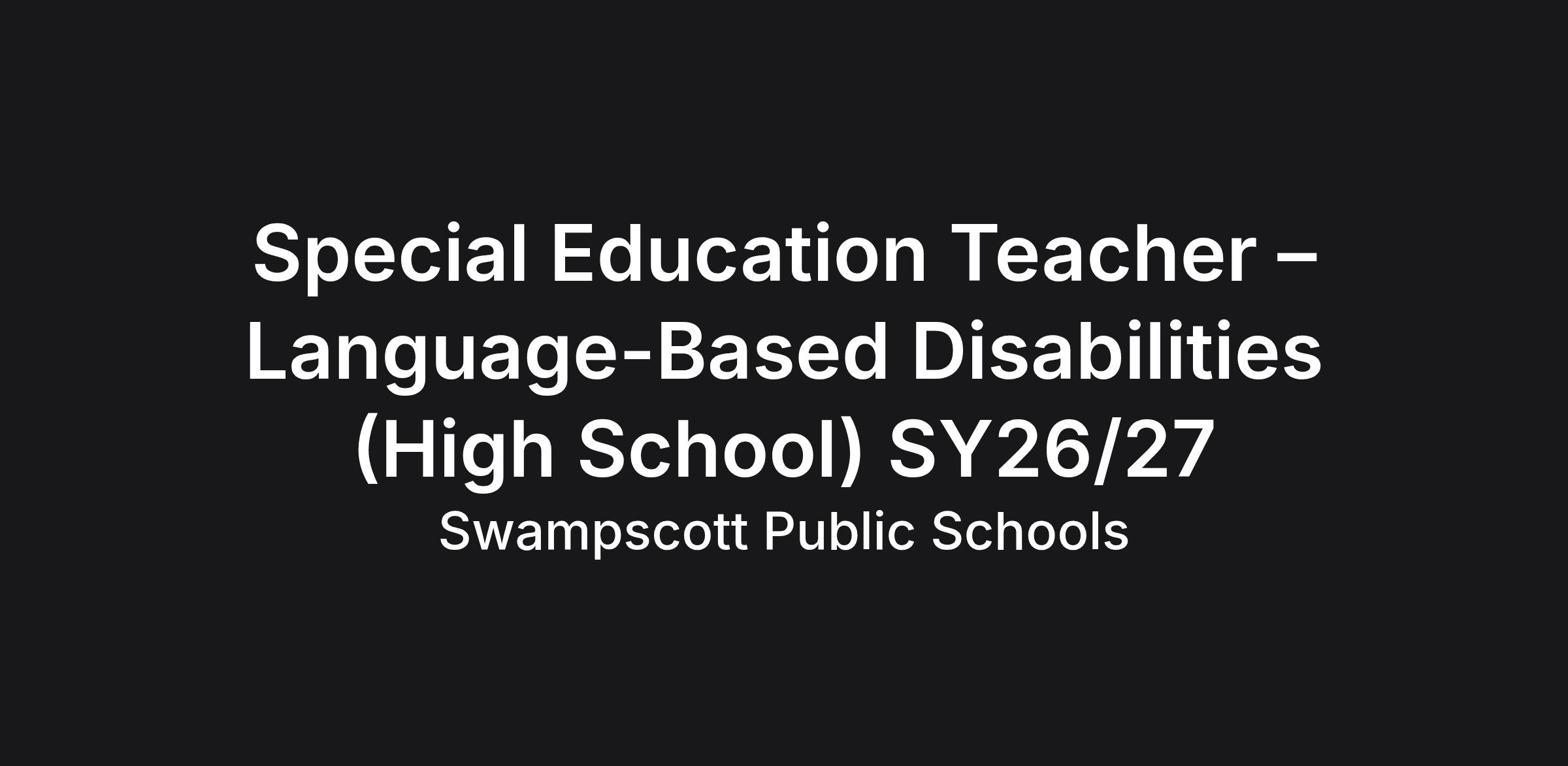 Special Education Teacher – Language-Based Disabilities (High School) SY26/27