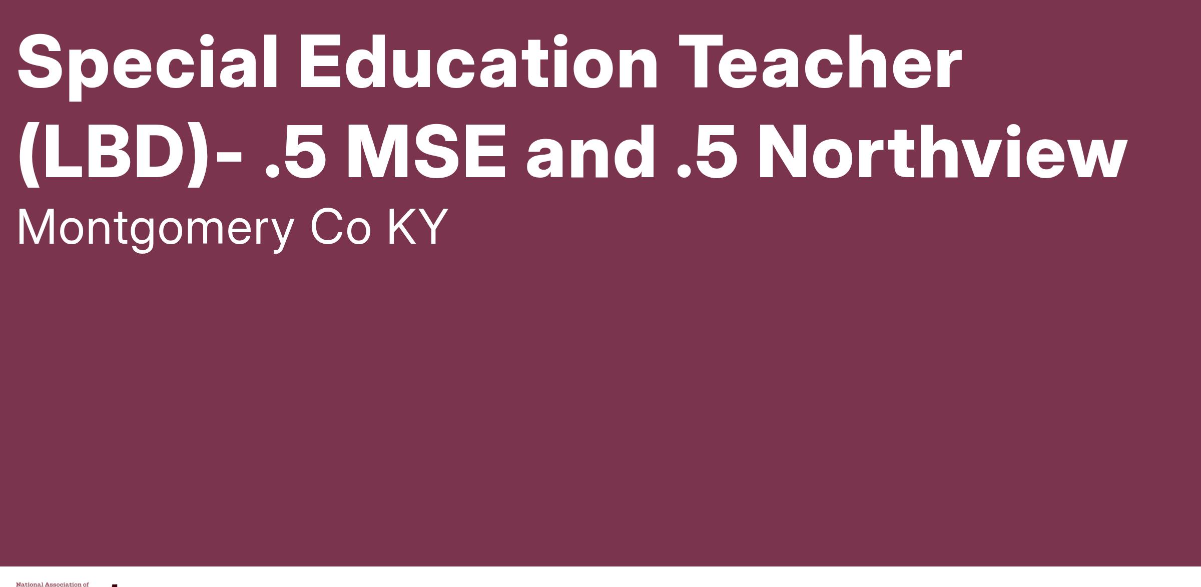 SPECIAL EDUCATION TEACHER (.5 MSE and .5 Northview)