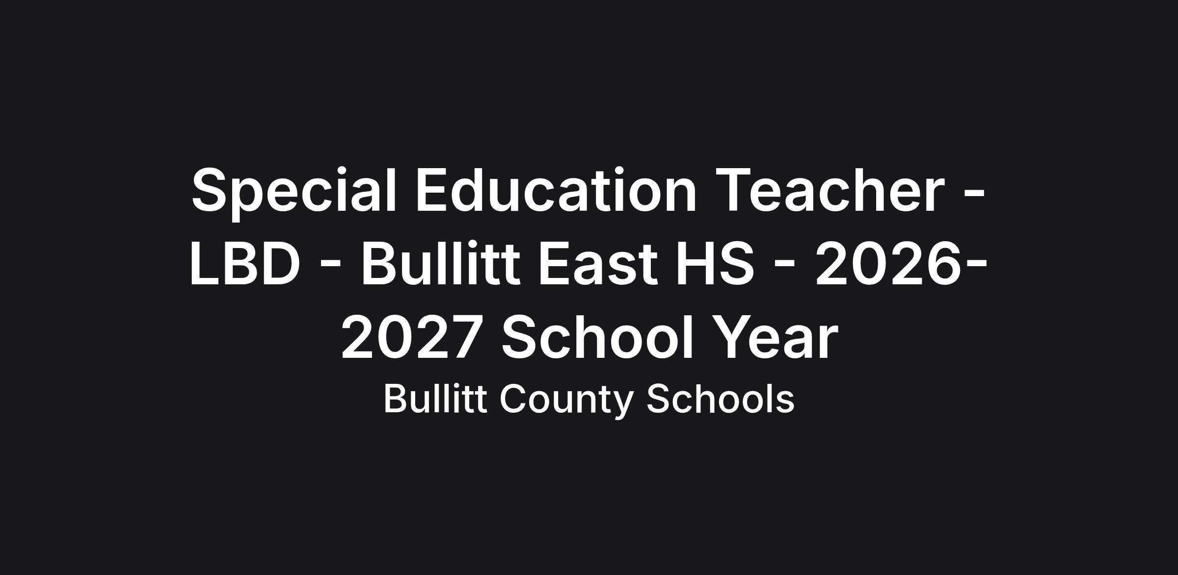 Bullitt East High School is looking for a Special Education Teacher. Candidates should hold certification for teaching students with Learning and Behavior Disorders (LBD). This individual will be responsible for planning, organizing and delivering a program of instruction that supports the premise that high expectations for all students are possible. Applicants should expect to work in an atmosphere of collegiality and should be willing to support our students through some extra-curricular or co-curricular programs.