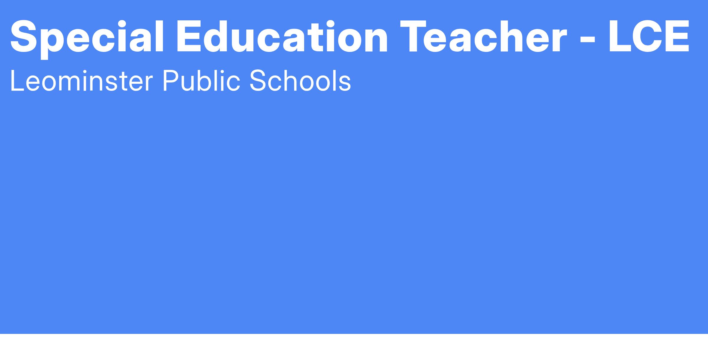 The City of Leominster / Leominster Public Schools is an Equal Opportunity / Affirmative Action Employer. The Leominster Public Schools insures equal employment, educational opportunities and affirmative action, regardless of race, religion, color, creed, national origin, gender identity, sex, sexual orientation or disability in compliance with Titles VI and IX, MGL Ch. 76 section 5, and section 504. Please contact Laura VanDorn, Administrator of Special Education and Pupil Personnel, at 978-534-7700, ext. 1307.