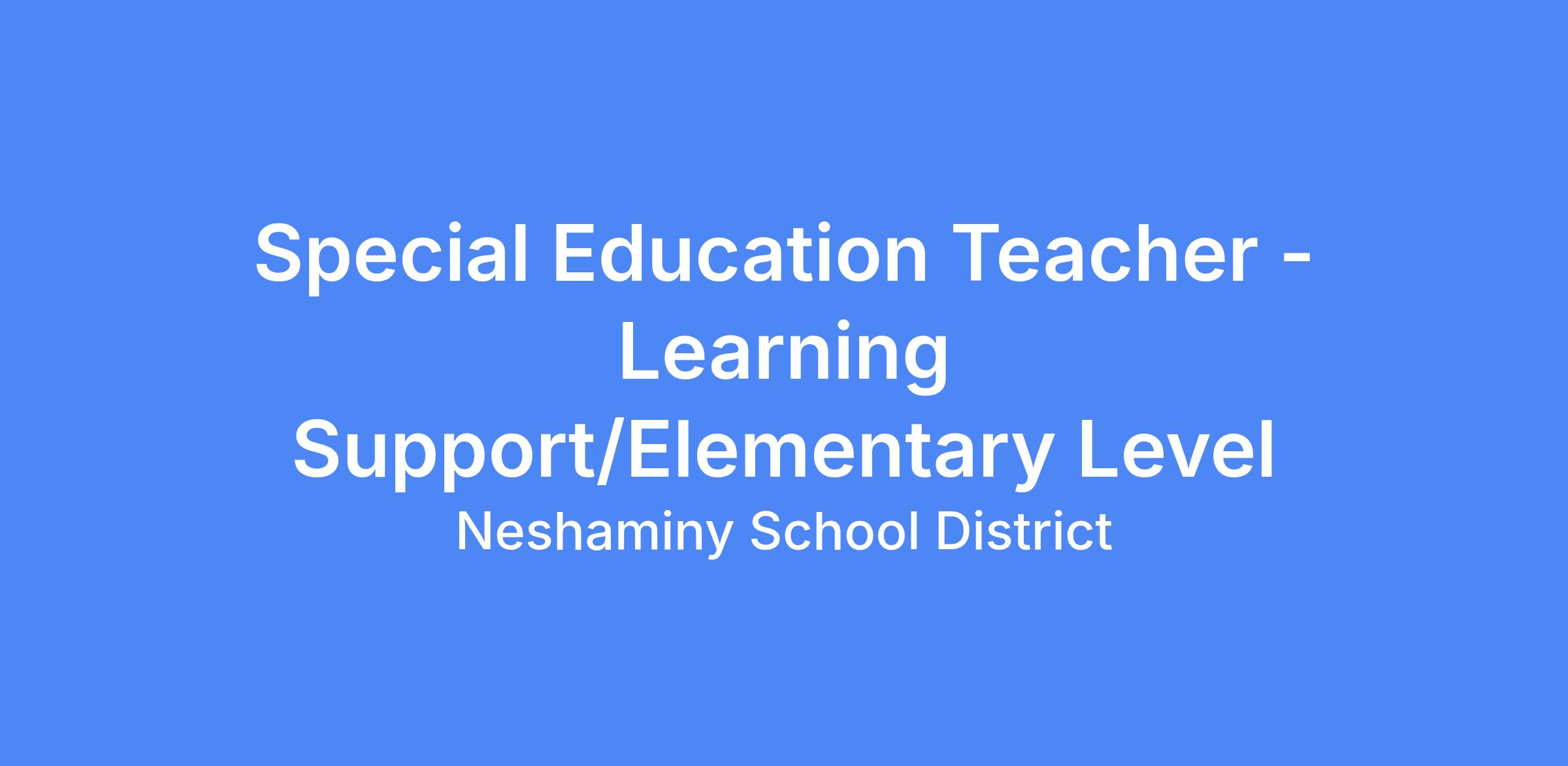 The Neshaminy School District is seeking Special Education Teachers for its anticipated Learning Support positions at the elementary level. Openings may be in any of the District’s elementary buildings. These positions are anticipated to start in August 2026 for the 26-27 school year.