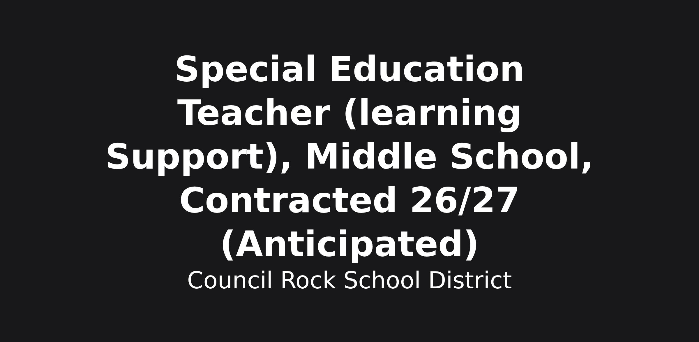 Position: Special Education Teacher (Learning Support), Middle School, Contracted 26/27 SY (Anticpated)