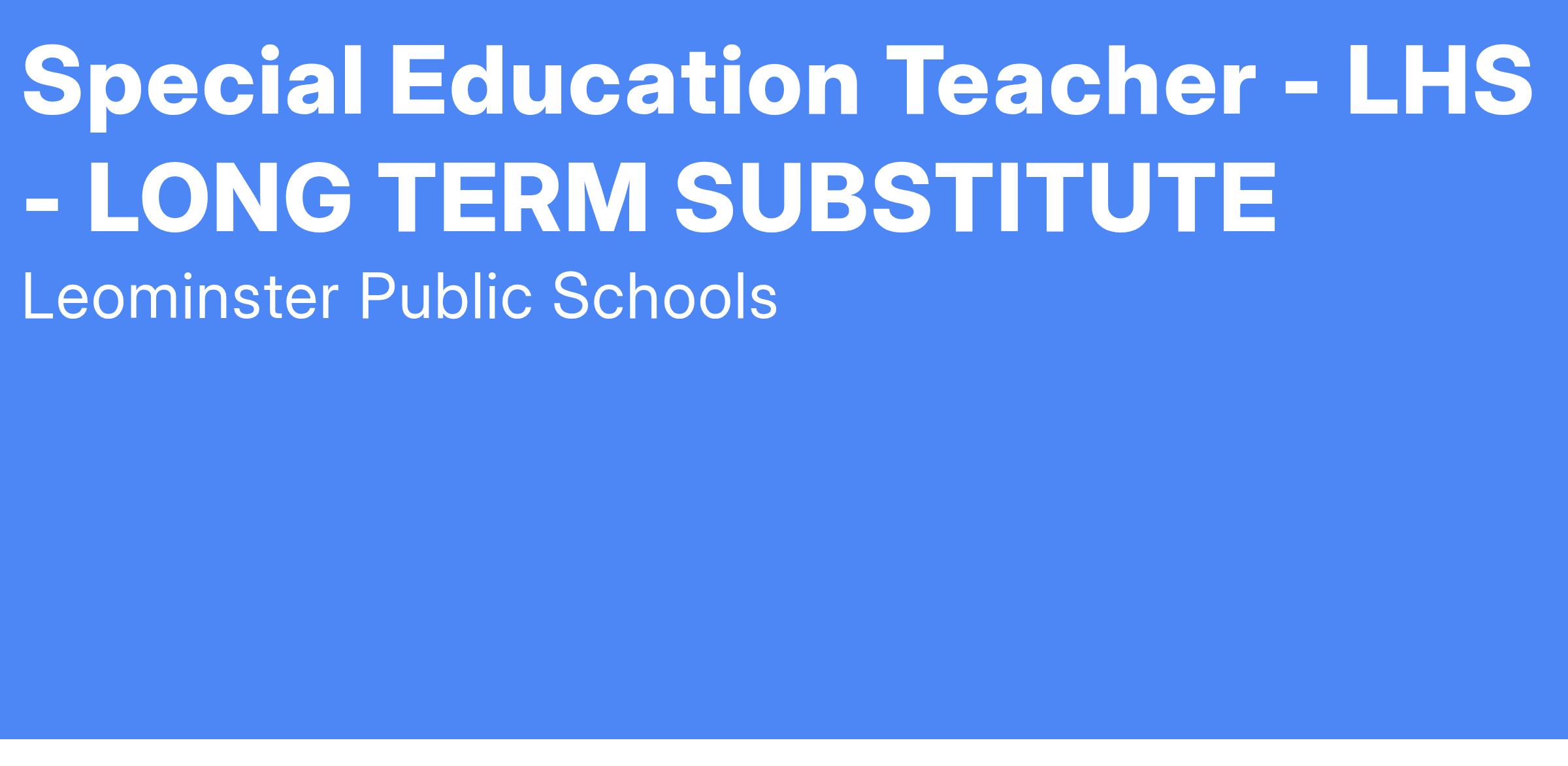 Leominster High School is seeking a long-term sub for a Special Education (ELA) teacher for a 12 week assignment starting the middle of February.