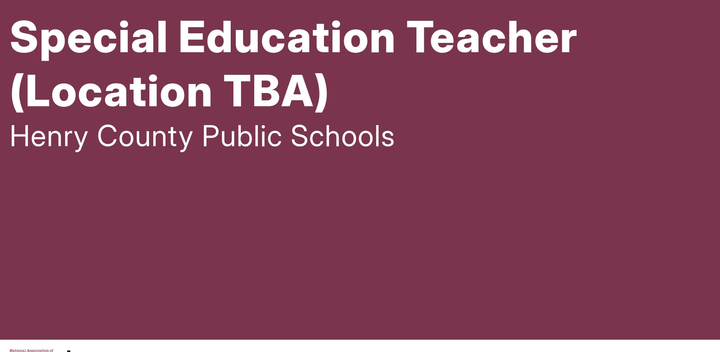 JOB TITLE: Special Education Teacher - TBA