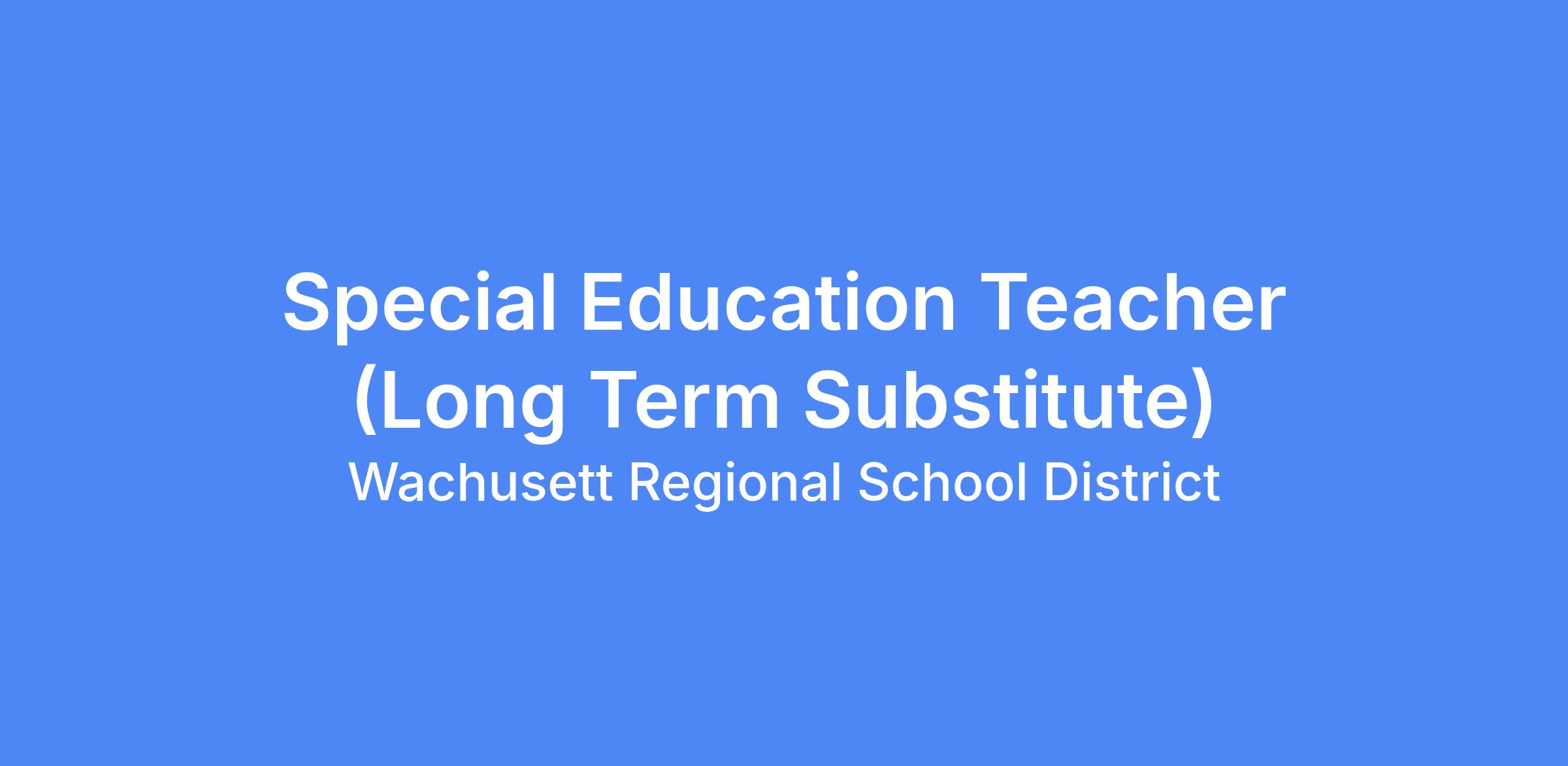 Position: Special Education Teacher (Long Term Substitute)