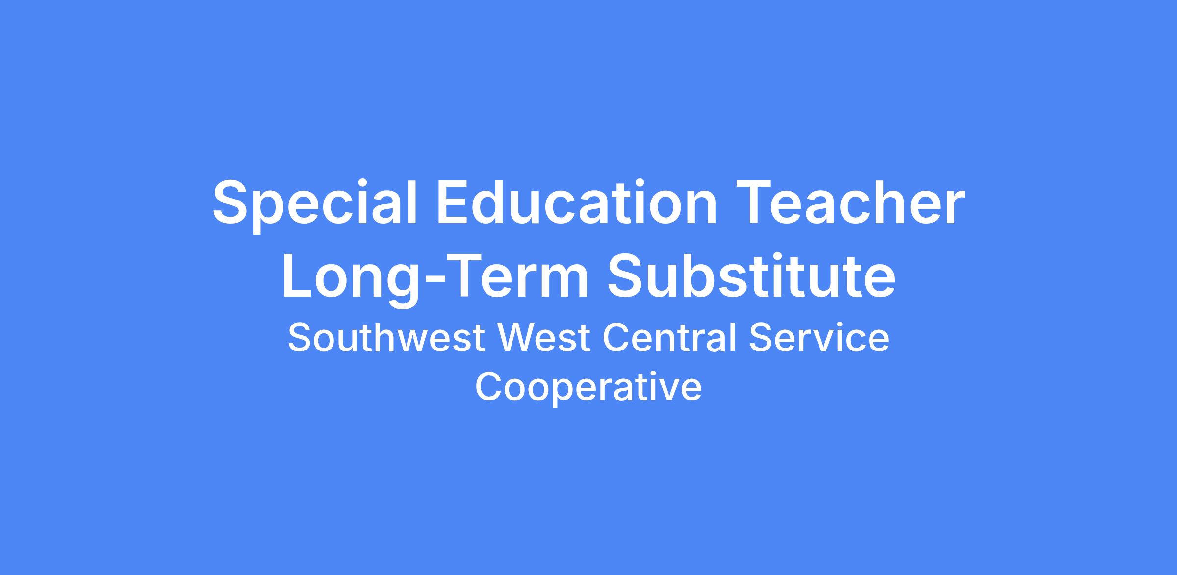 POSITION AVAILABLE: Special Education Teacher � Long Term Substitute