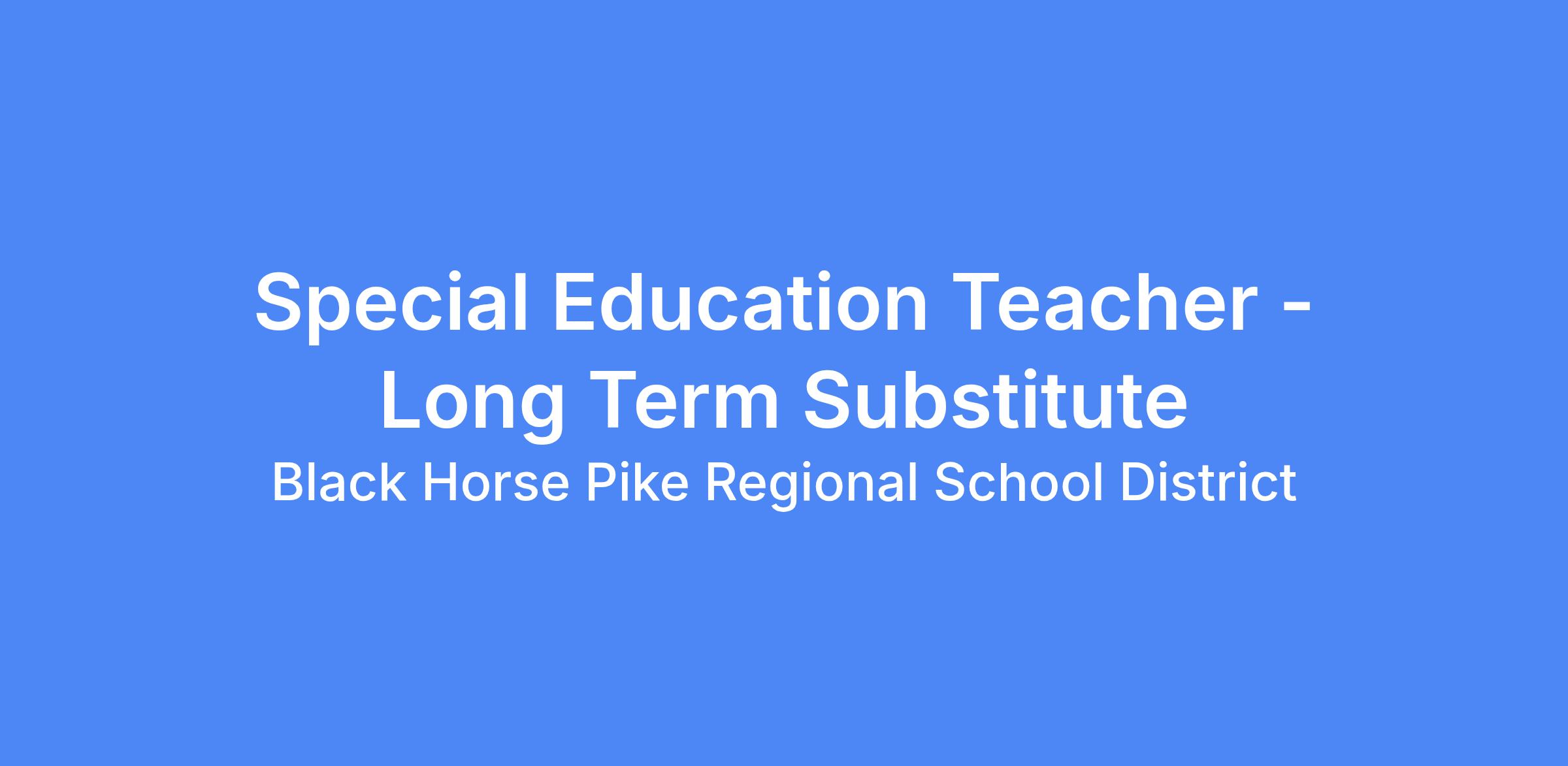 The Black Horse Pike Regional School District has an immediate opening for a Special Education Long Term Substitute Teacher at Timber Creek High School, through the end of the 2025-2026 school year.