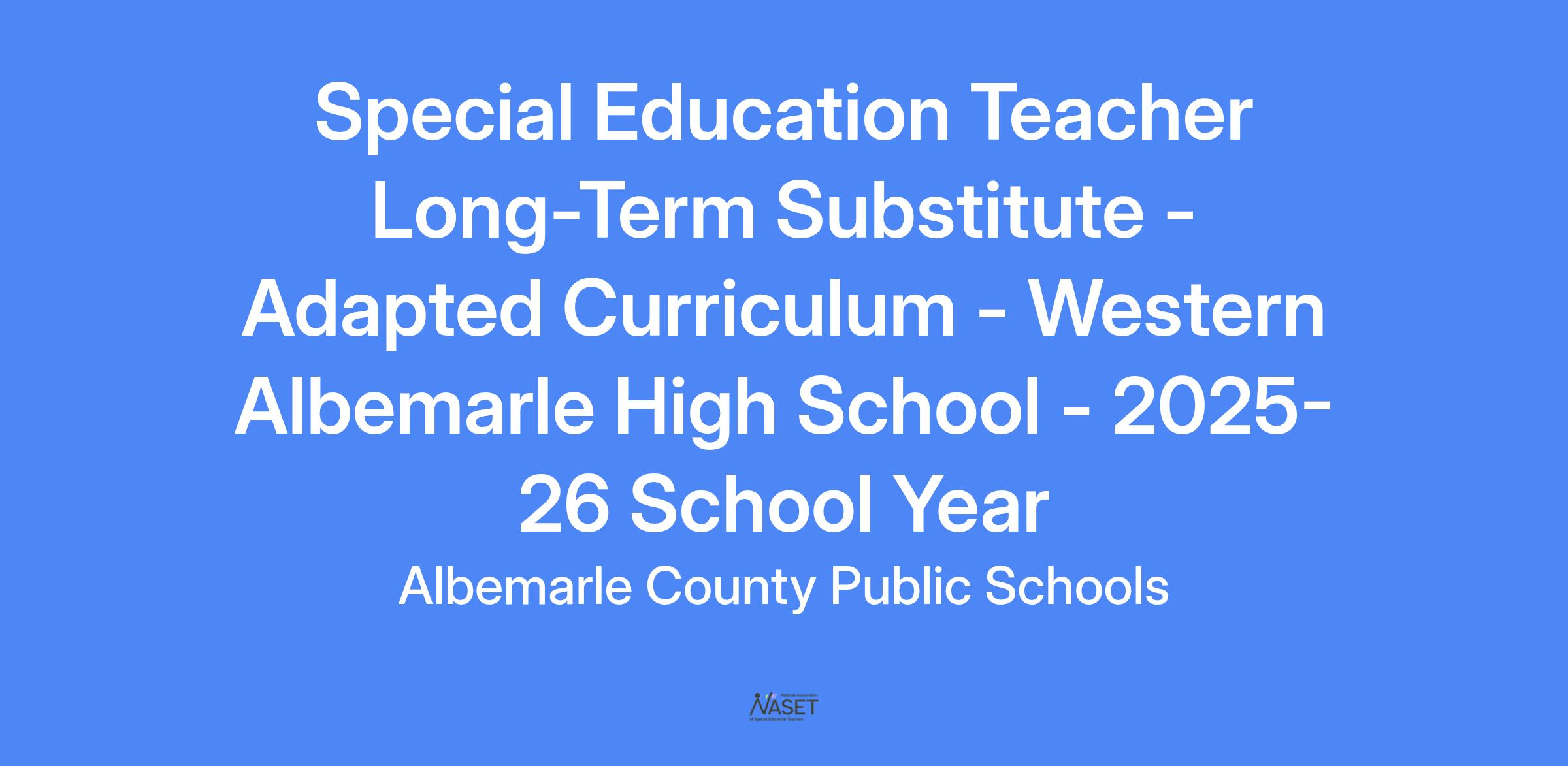 Special Education Teacher Long-Term Substitute - Adapted Curriculum