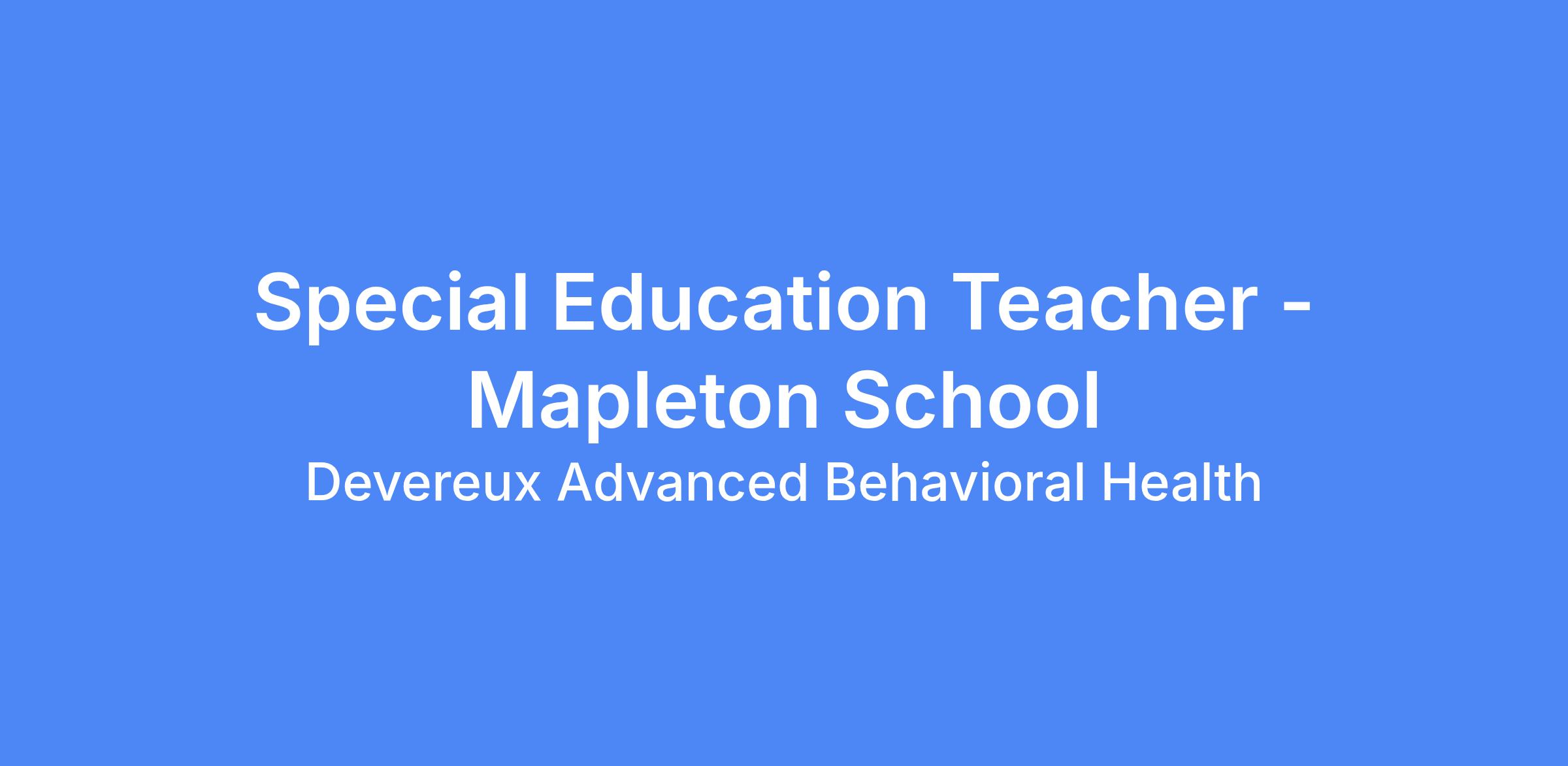 You will work with other dedicated professionals who share your passion for helping individuals in need and a passion for delivering a high quality of education at our Mapleton School located in Malvern, PA.