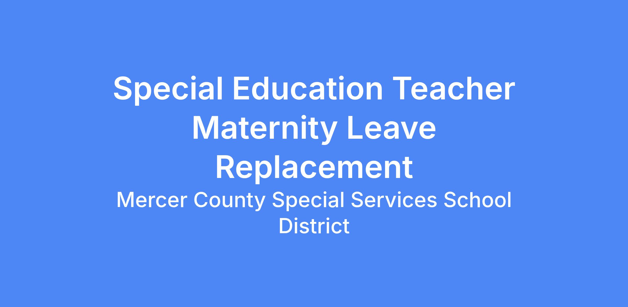 POSITION TITLE: Special Education Teacher Leave Replacement - Certified