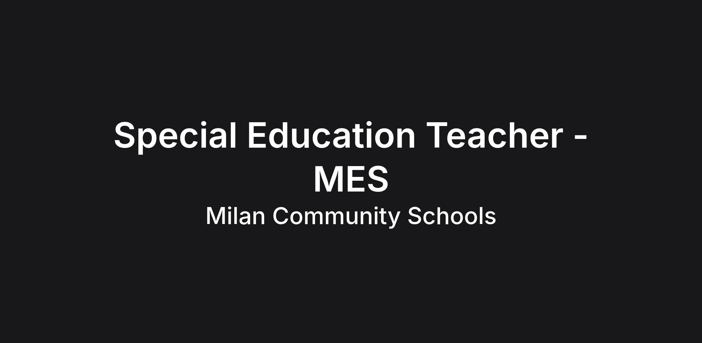 Milan Elementary School - Special Education Teacher for an ED classroom setting starting the 2026-27 school year.