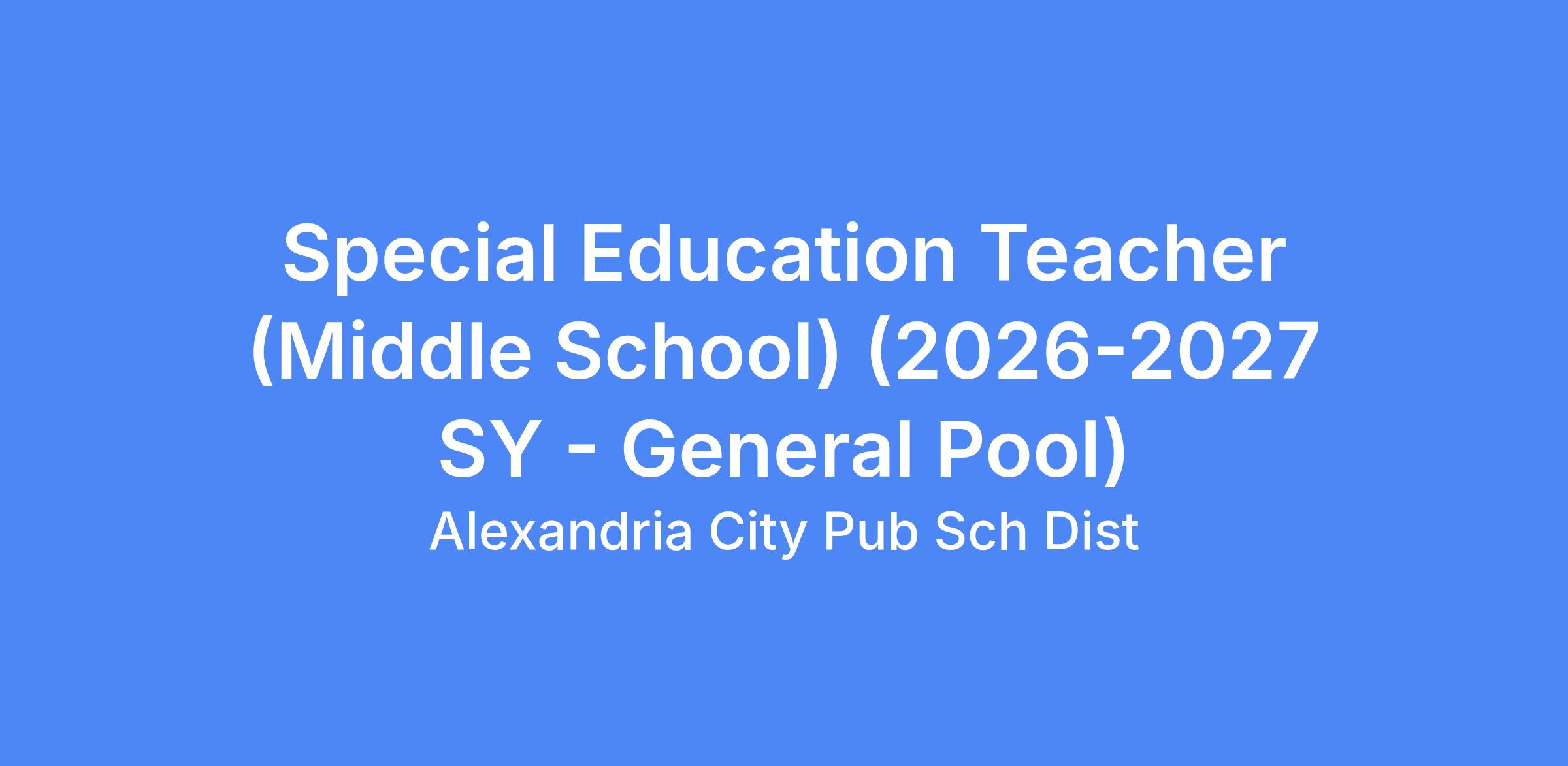 The Special Education Teacher (Middle School) develops special education students' success in academics, interpersonal skills, and activities of daily living by implementing district approved curriculum; documenting teaching and student progress/activities, outcomes; addressing students' specific needs; providing a safe and optimal learning environment; and providing feedback to students, parents, and administration regarding student progress, expectations, goals, etc. This is a Licensed Middle School 10-month, 195 day Teacher position, reporting to the School Principal.