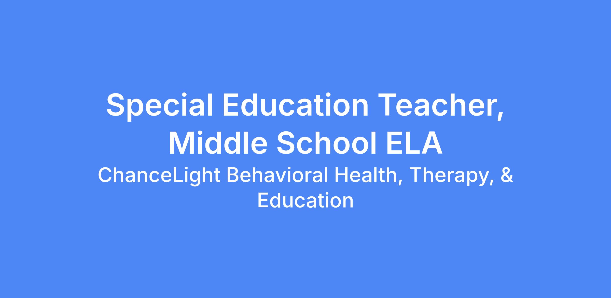 - Prior experience teaching ELA at a middle school grade level, preferably in an alternative, special education and/or behavioral health program setting.