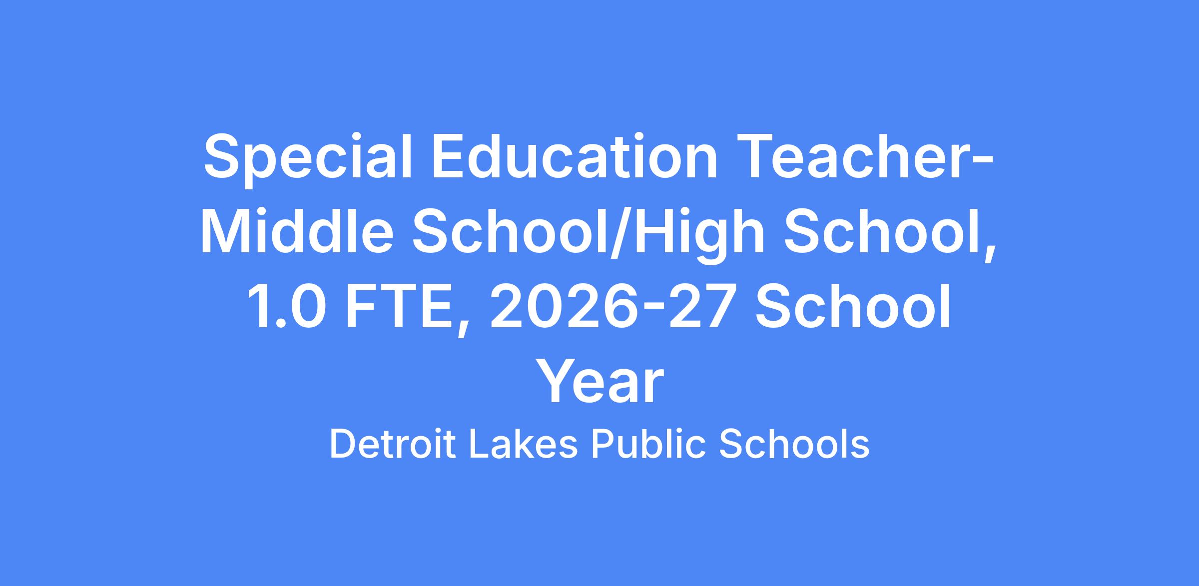 Detroit Lakes Public Schools (ISD#22) is seeking a Special Education Teacher to join our progressive and growing school district.