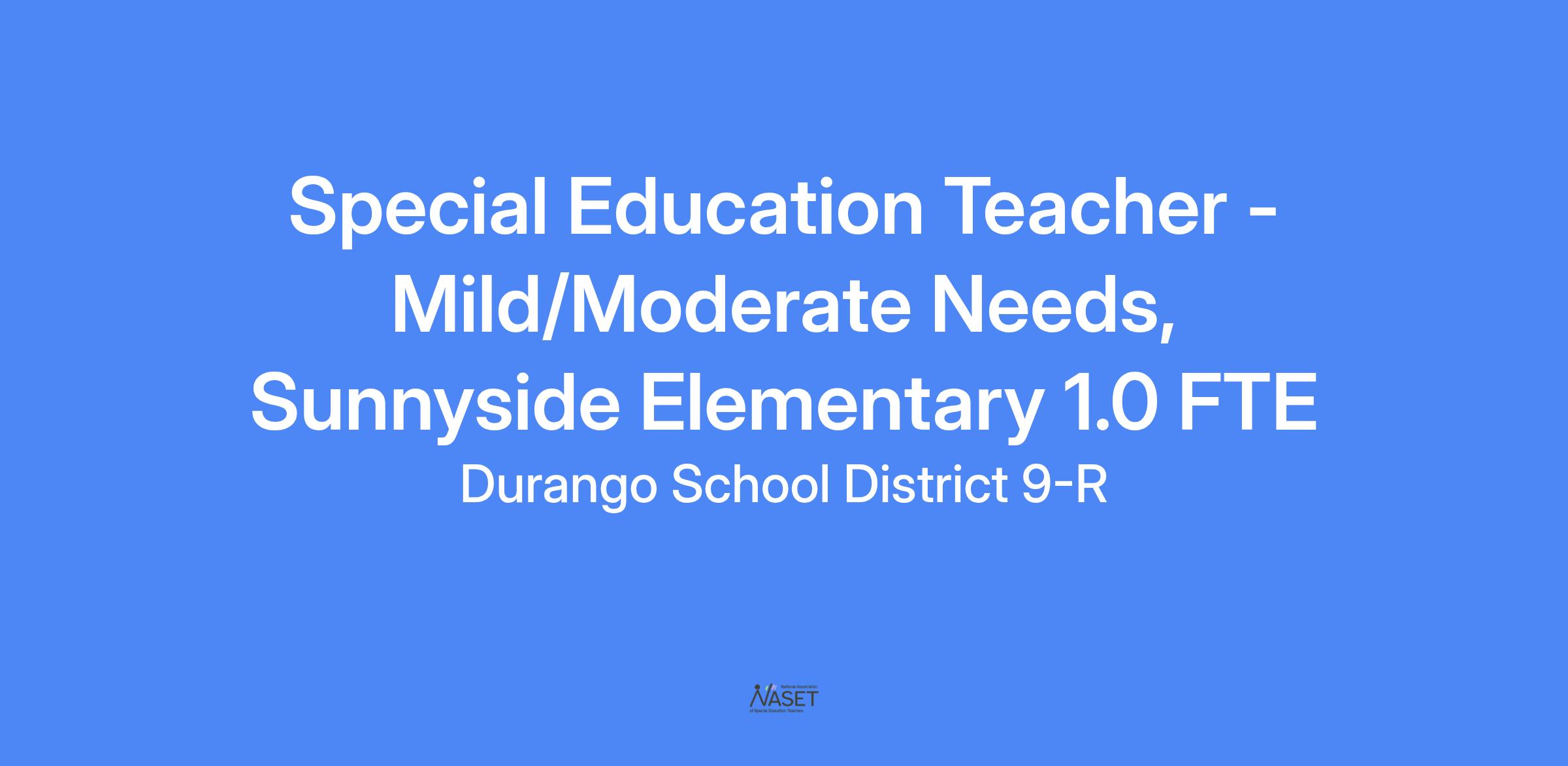 Durango School District is accepting applications for a Mild/Moderate Needs Special Education Teacher to join the team at Sunnyside Elementary for the 2025/2026 school year. Must meet CDE and ESSA's requirements for In-Field Teacher in Special Education by the start date. Begins January 5, 2026 or ASAP.