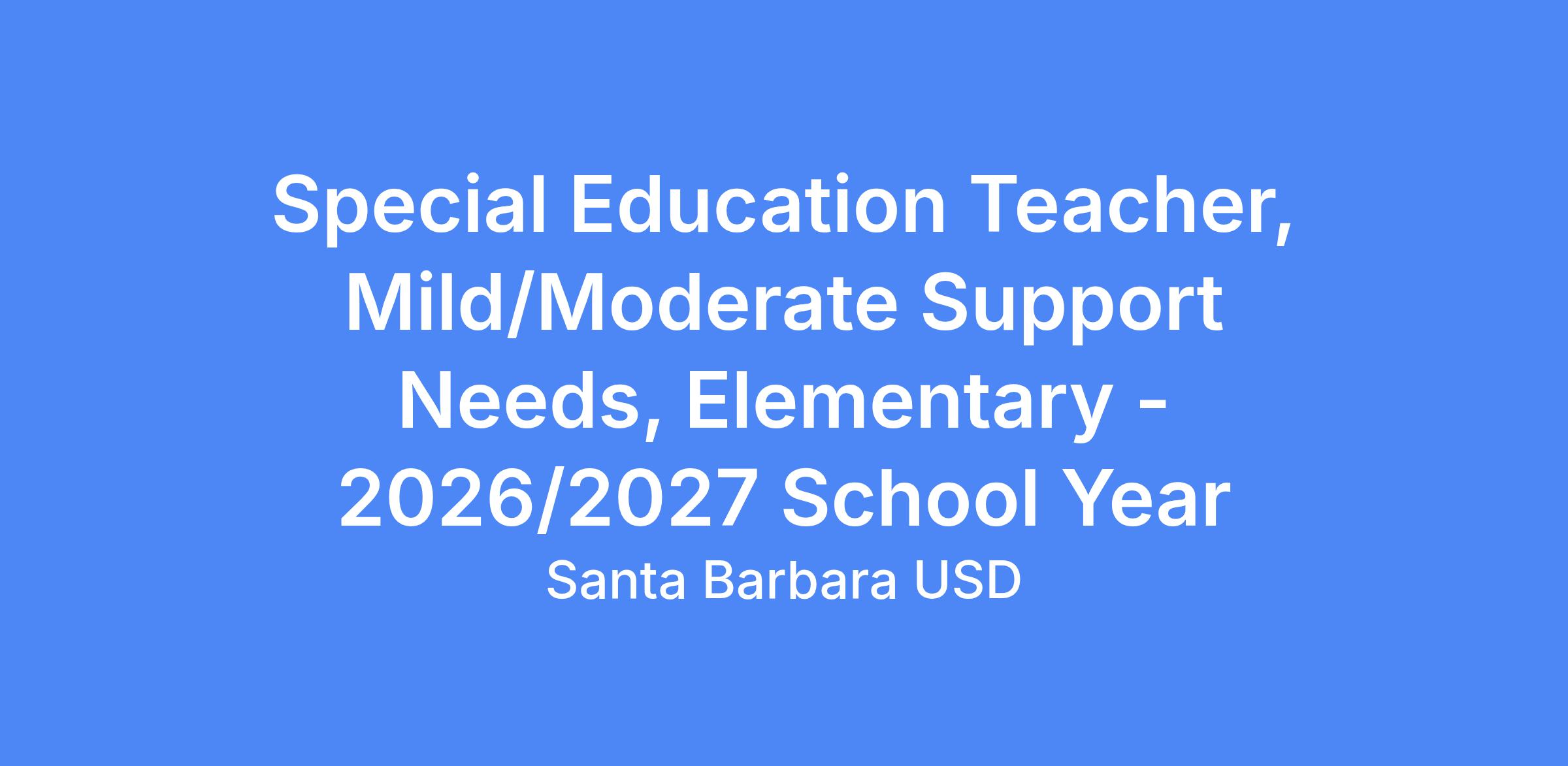 Special Education Teacher, Mild/Moderate Support Needs, Elementary - 2026/2027 School Year