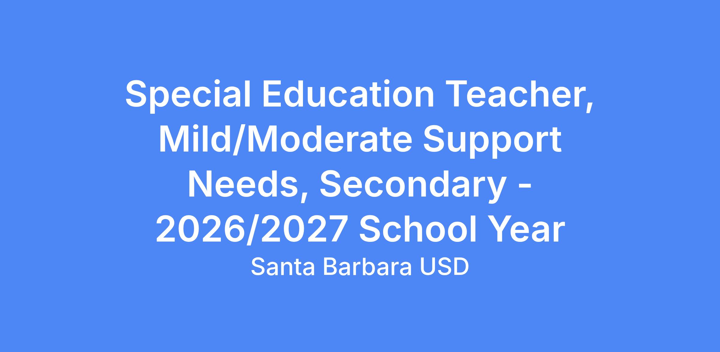 Title: Special Education Teacher, Mild/Moderate Support Needs