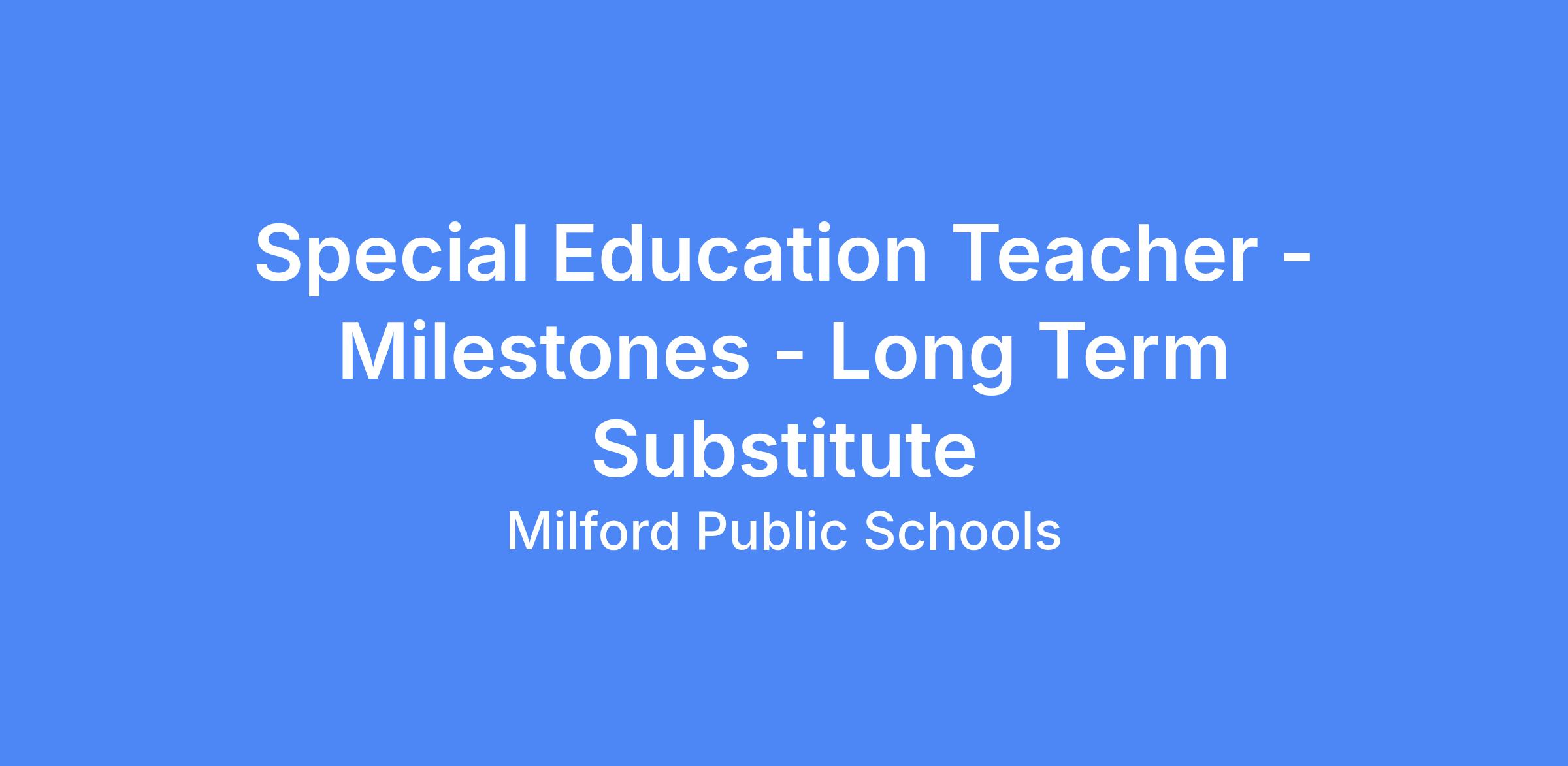 Position: Special Education Teacher - Milestones Program Long Term Substitute