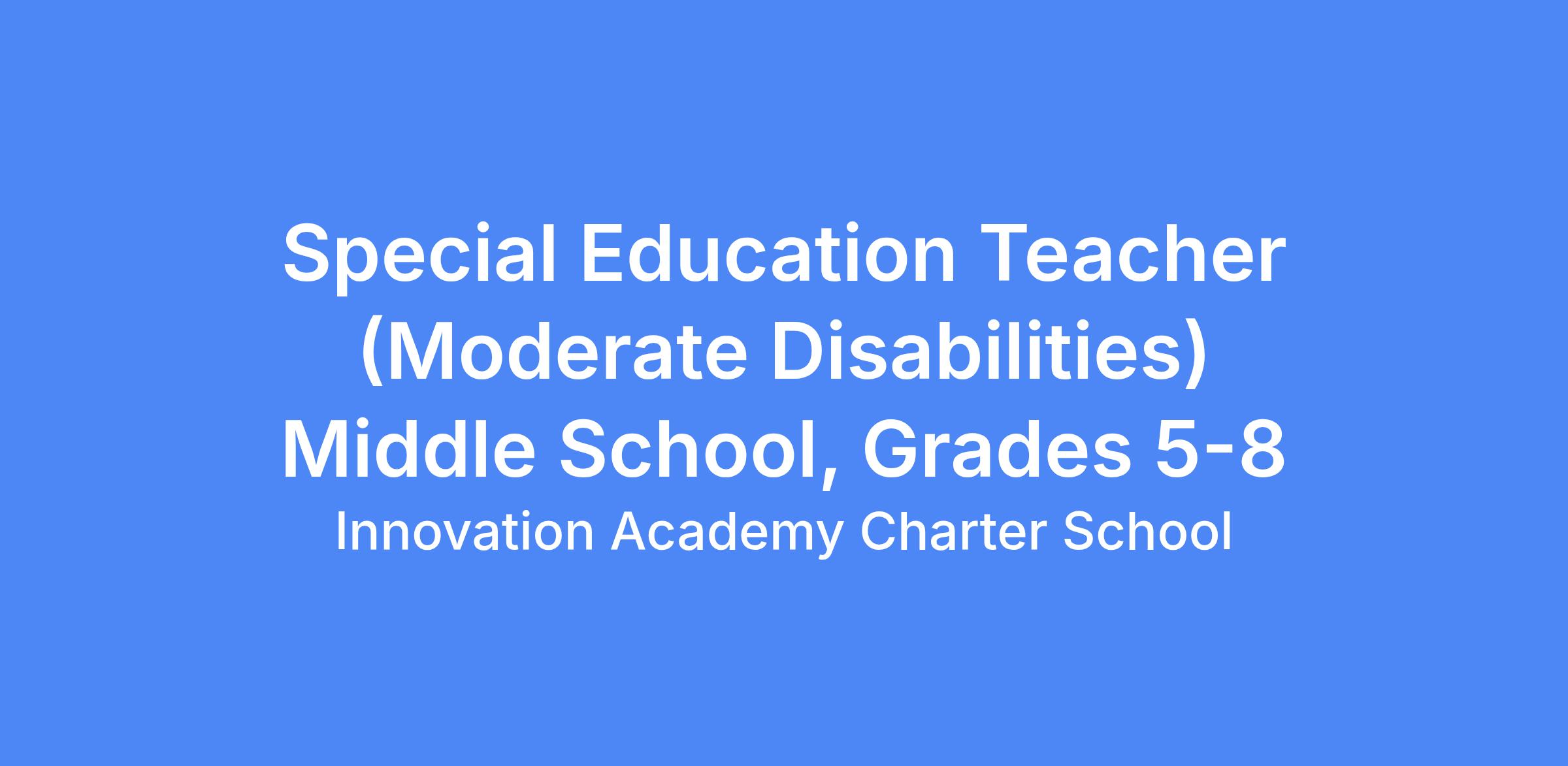 Innovation Academy Charter School is seeking a passionate Special Education Teacher to join our collaborative middle school student services team for the 2026–2027 school year. In this role, you will support students with Individualized Education Programs (IEPs) in an inclusive classroom environment while helping them build academic skills, confidence, and independence. This will serve grades 5-8.