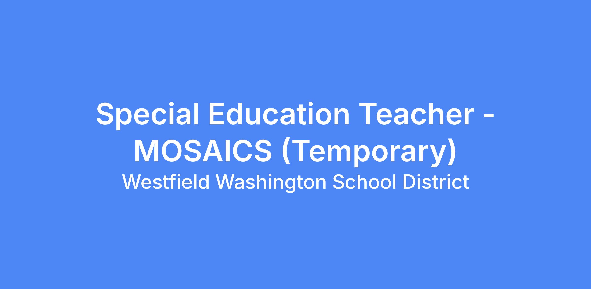 Special Education Teacher MOSAICS position (Temporary) is available at Shamrock Springs Elementary School effective 3/18/26 - 5/27/26.