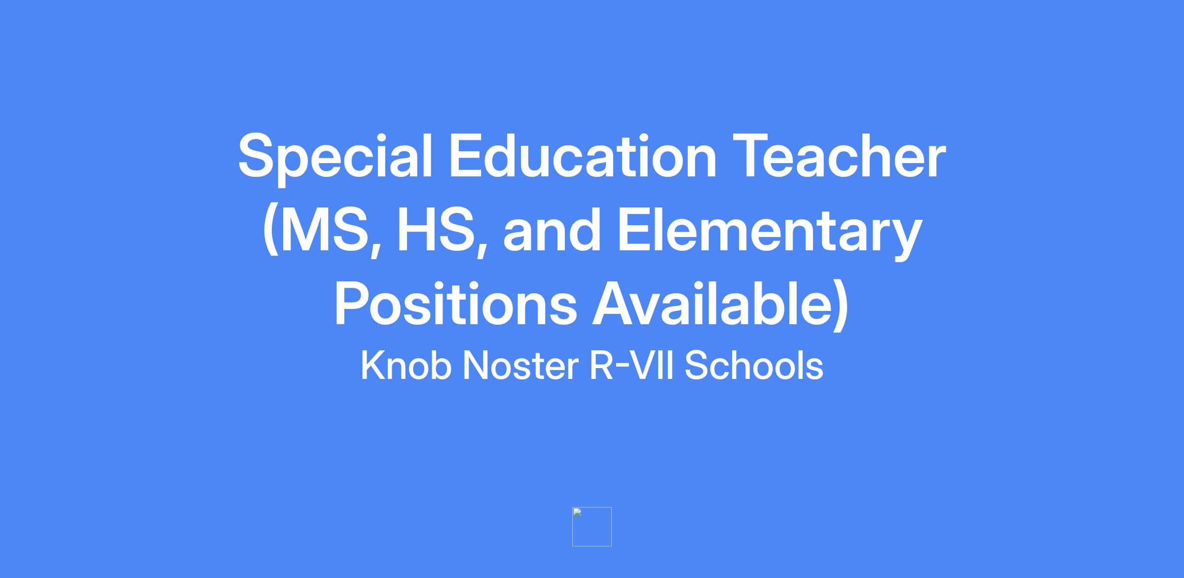 Knob Noster Public Schools is seeking dynamic individuals to serve as a Special Education Teacher for the 2026-2027 school year.
