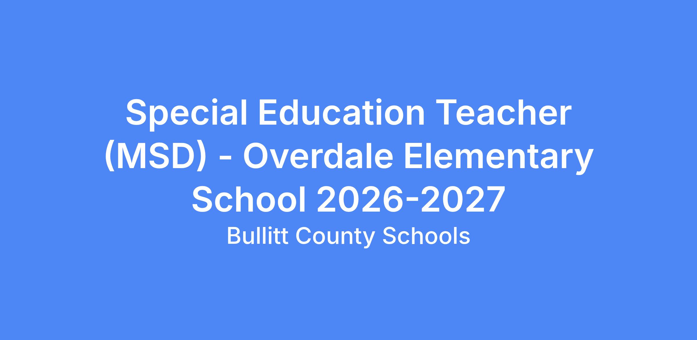 Overdale Elementary has a vacancy for a MSD Special Education Teacher beginning in the 2026-2027 school year.