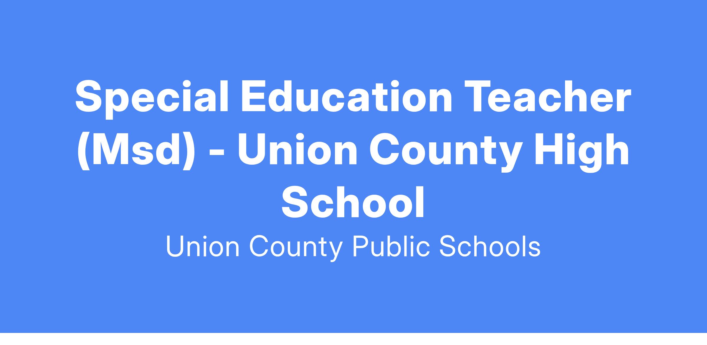 Union County High School has a vacancy for the position of Special Education Teacher (MSD) for the 24-25 school year. The highly effective and motivated candidate must have an active Teaching Certification for K-12 Special Education (MSD) or a Statement of Eligibility (SOE) for teaching students with moderate/severe disabilities issued by the Kentucky Education Professional Standards Board. The potential candidate will also have the requisite content knowledge, experiences, and a true desire to inspire the champion within each student.