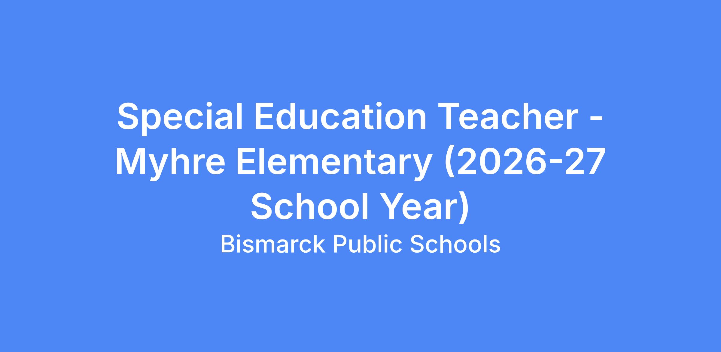 Bismarck Public Schools is accepting applications for a Special Education Teacher at Myhre Elementary School for the 2026 - 2027 School Year.