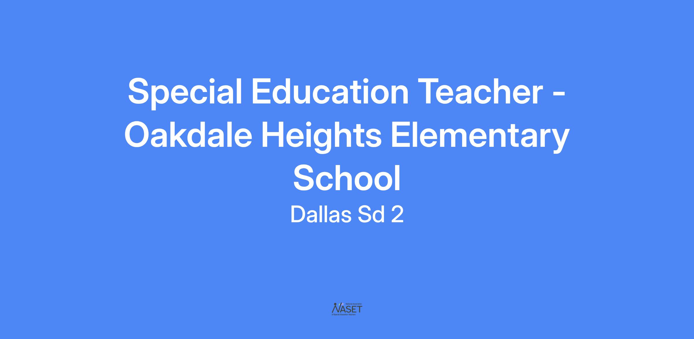Dallas School District is accepting applications for full-time Special Education Teacher at Oakdale Heights Elementary School.