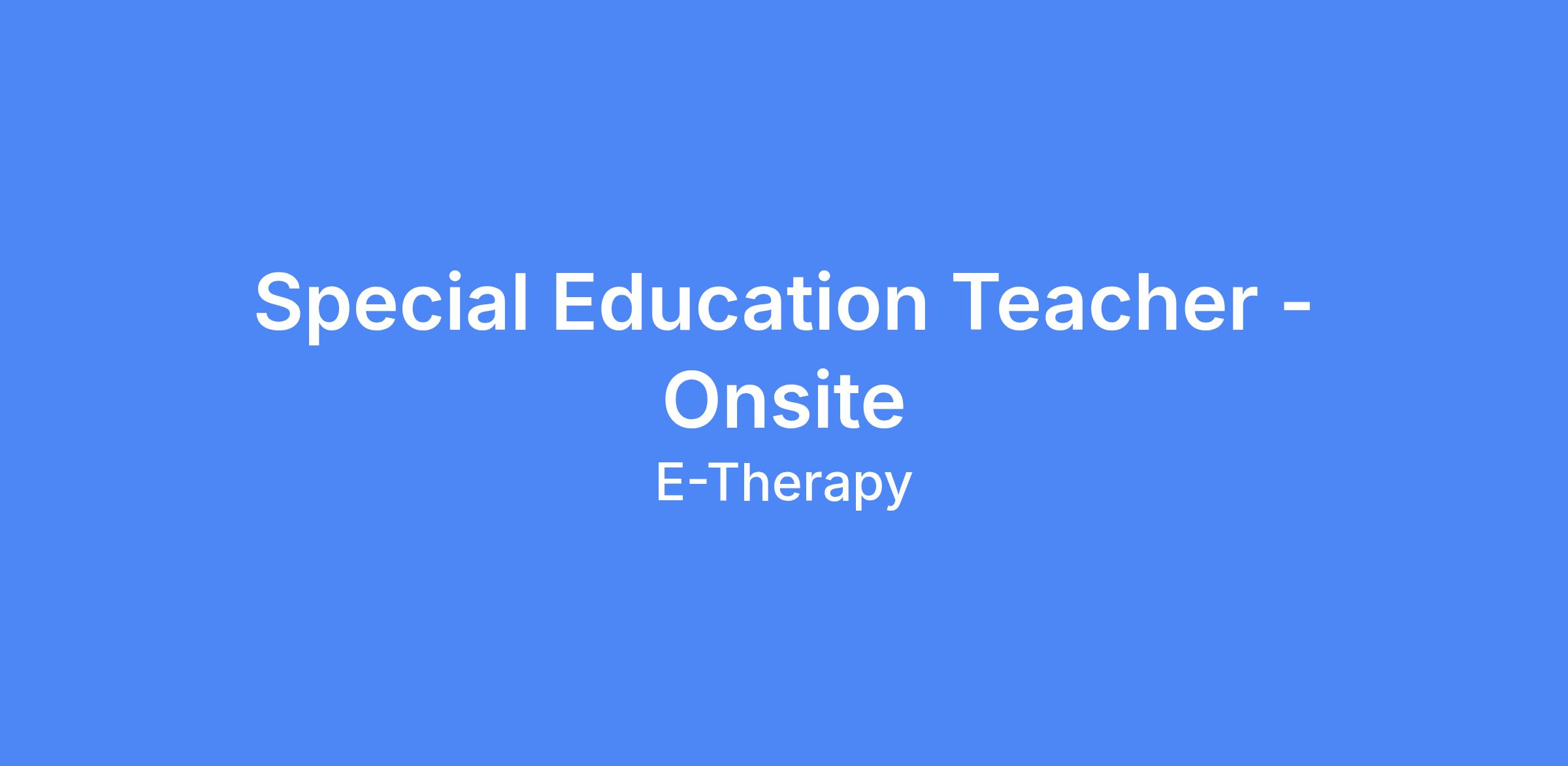 We are currently seeking a Special Education Teacher to join our dynamic team at E-Therapy. The successful candidate will play a pivotal role in providing specialized instruction and support to students with disabilities, collaborating with school staff and families to ensure academic success and personal growth.