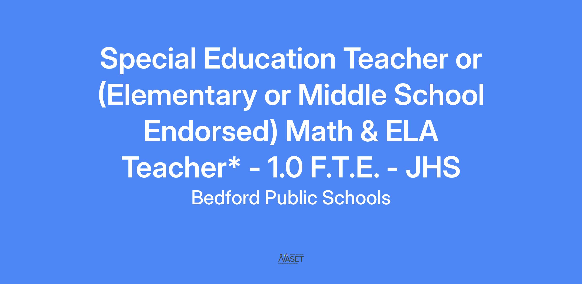Special Education Teacher or (Elementary or Middle School Endorsed) Math & ELA Teacher - 1.0 F.T.E. - JHS