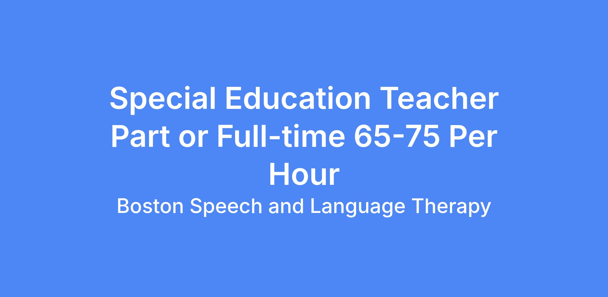 Boston Speech Therapy is looking for a compassionate and skilled Part-Time or Full-Time Special Education Teacher to join our team! This position pays $65-75 per hour, and it’s at a middle school.
