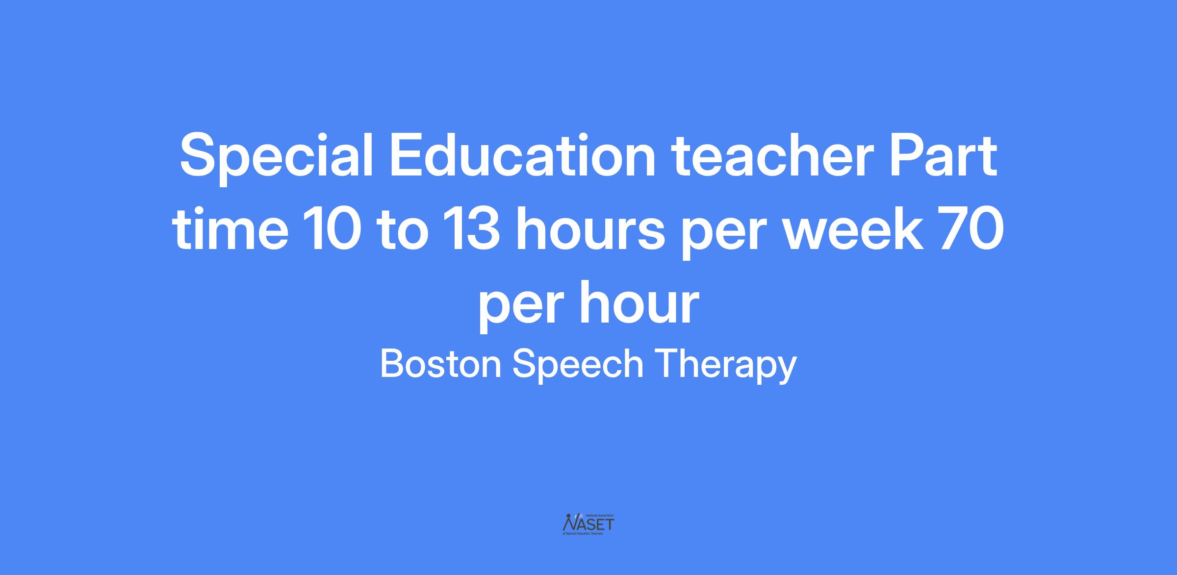 Boston Speech Therapy is looking for a compassionate and skilled Part-Time Special Education Teacher to join our team! We offer a competitive pay rate of $70 per hour for 10 to 13 hours of work per week, allowing you to balance your professional and personal life while making a significant impact on students' educational journeys.
