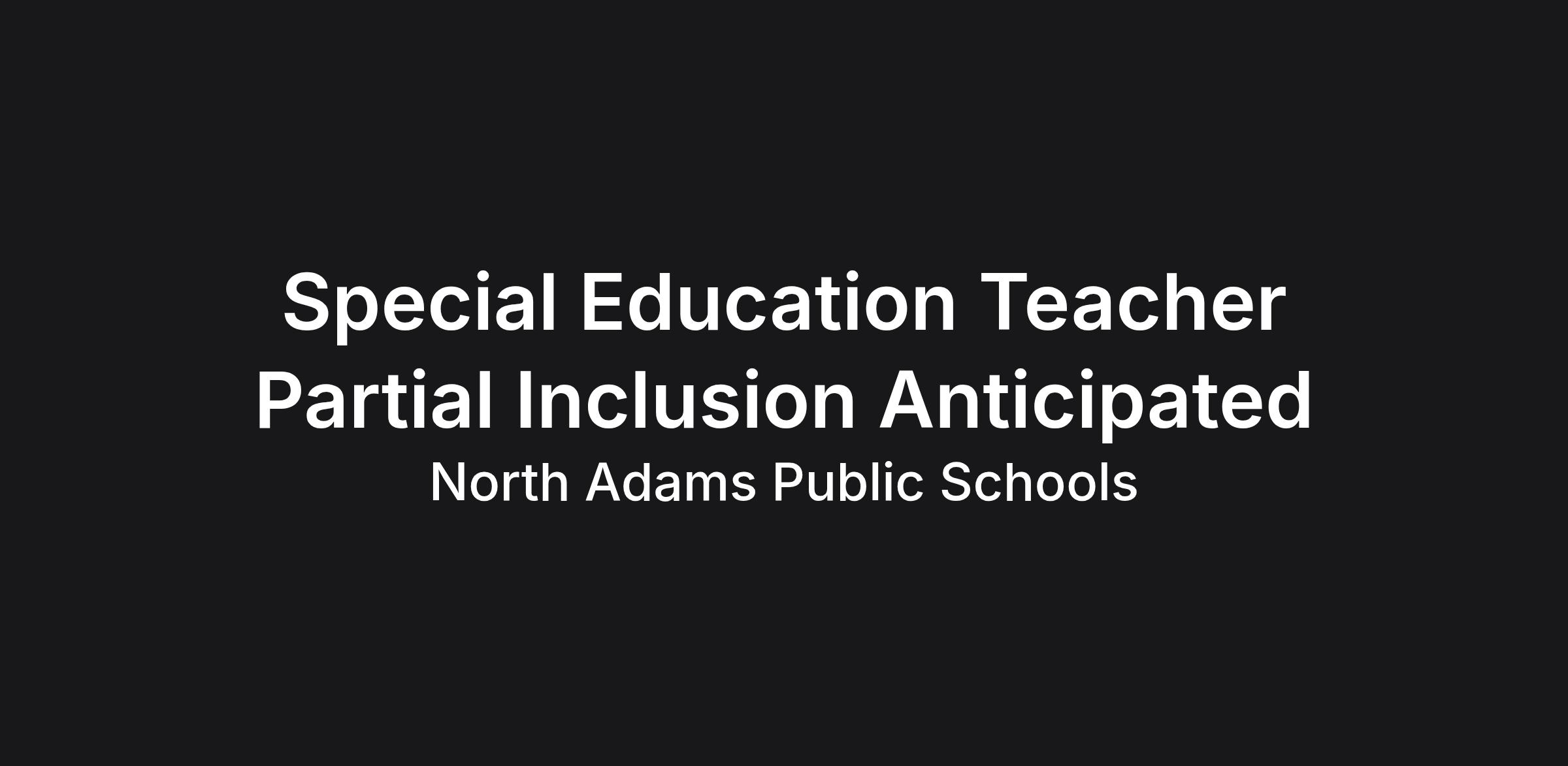 The North Adams Public Schools anticipates the need for a Special Education Teacher at Colegrove Park Elementary School in the upcoming 2026/2027 school year. This position is subject to the North Adams Teachers Association contract.