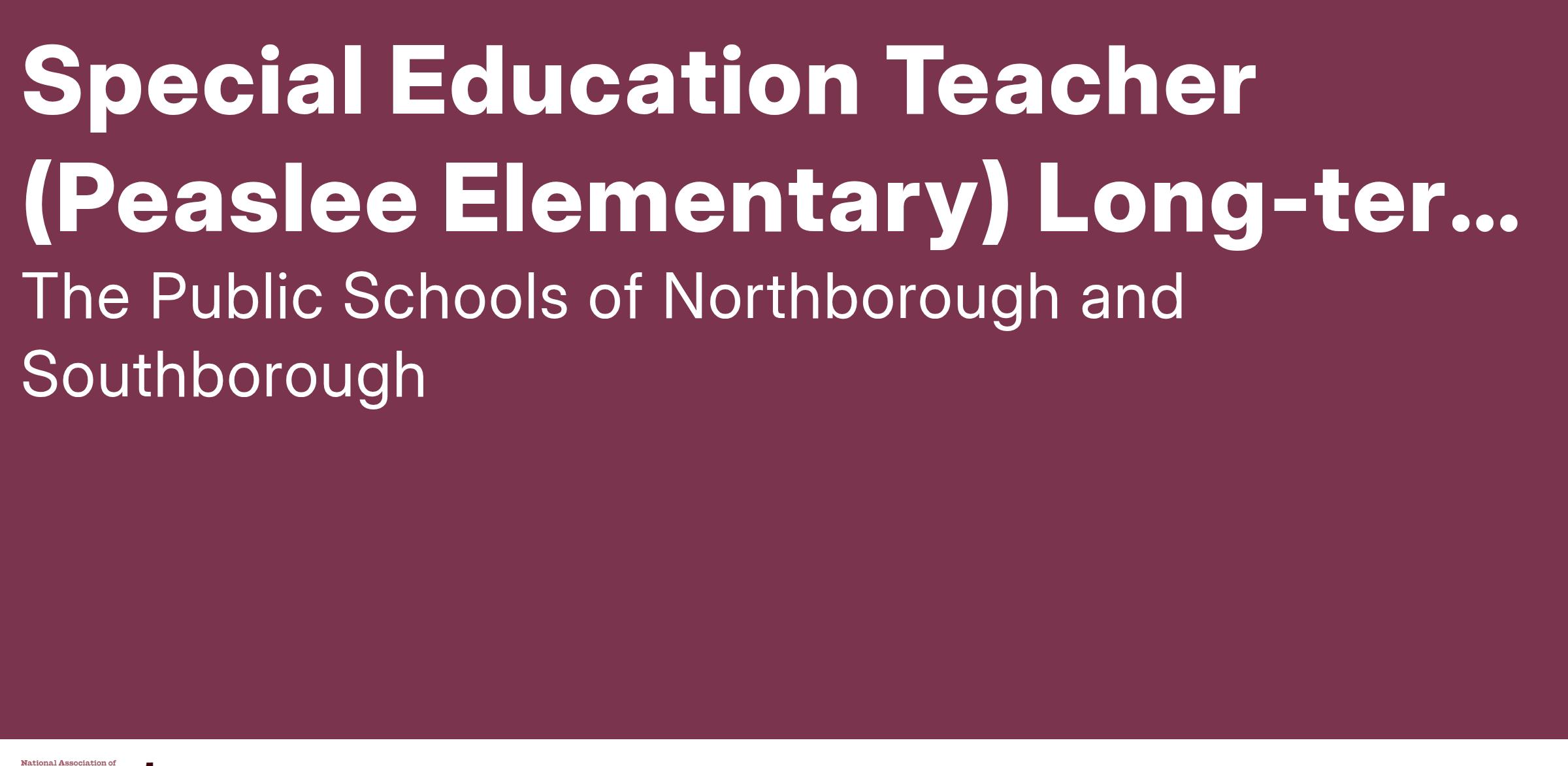 Northborough-Southborough Public Schools is an Equal Opportunity Employer. Northborough-Southborough Public Schools ensures equal employment opportunities regardless of race, creed, sex, color, national origin, religion, age, sexual orientation, gender identity, disability, or any other class as protected by law. The Northborough-Southborough Public School places a high value on recruitment of diverse staff. Any individual needing assistance in making an application for any opening should contact the district human resources office.