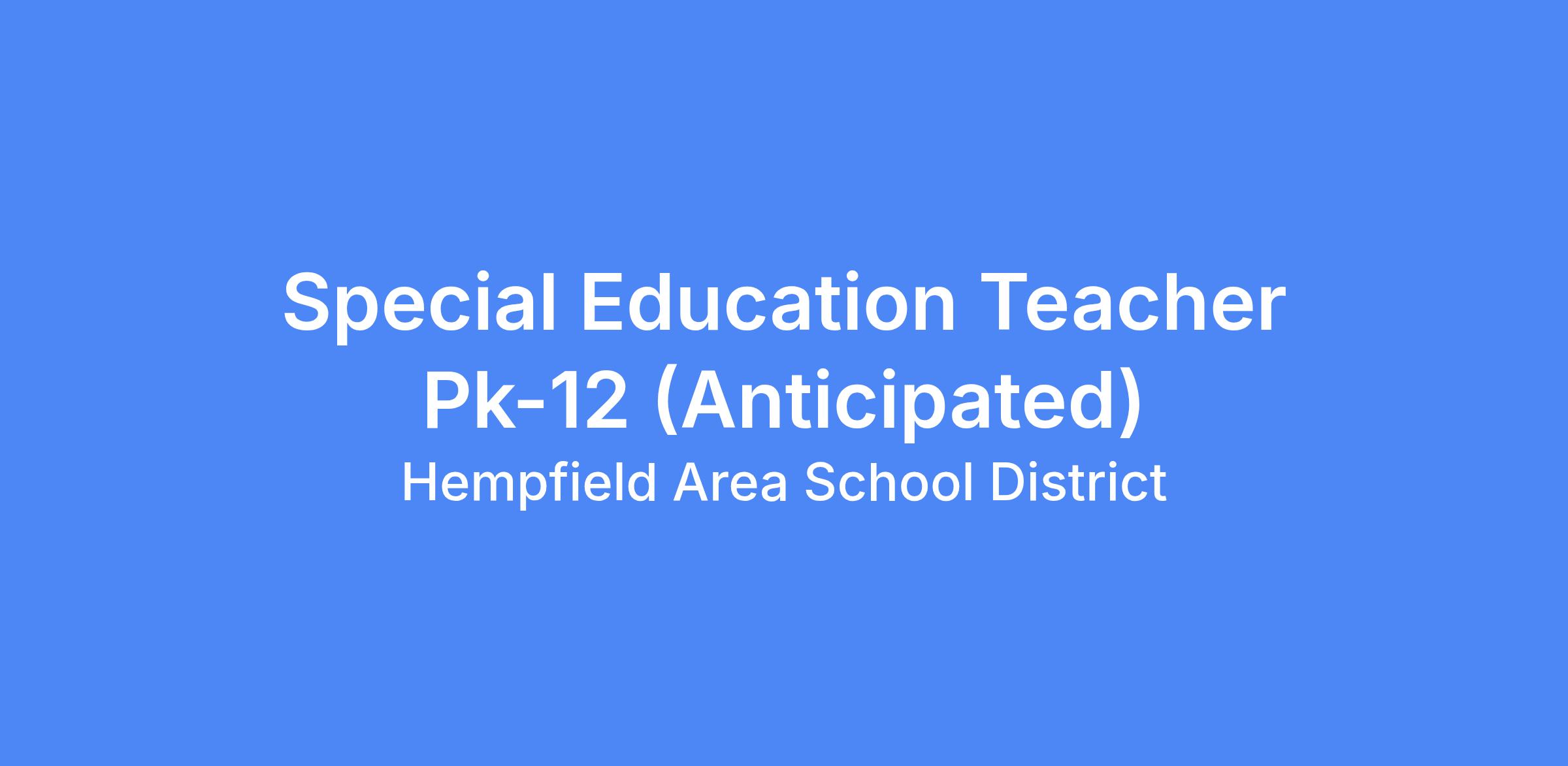 The Hempfield Area School District anticipates openings for Special Education Teachers beginning August 2026.