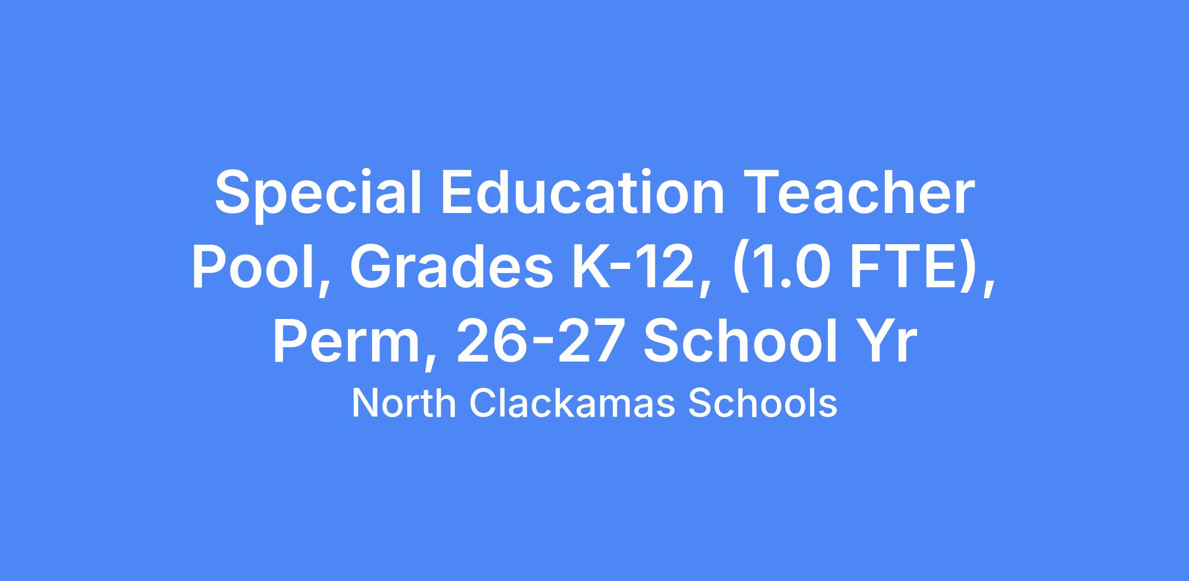 Special Education Teacher Pool, Grades K-12, (1.0 FTE), Full-Time, Permanent, 2026-2027 School Year